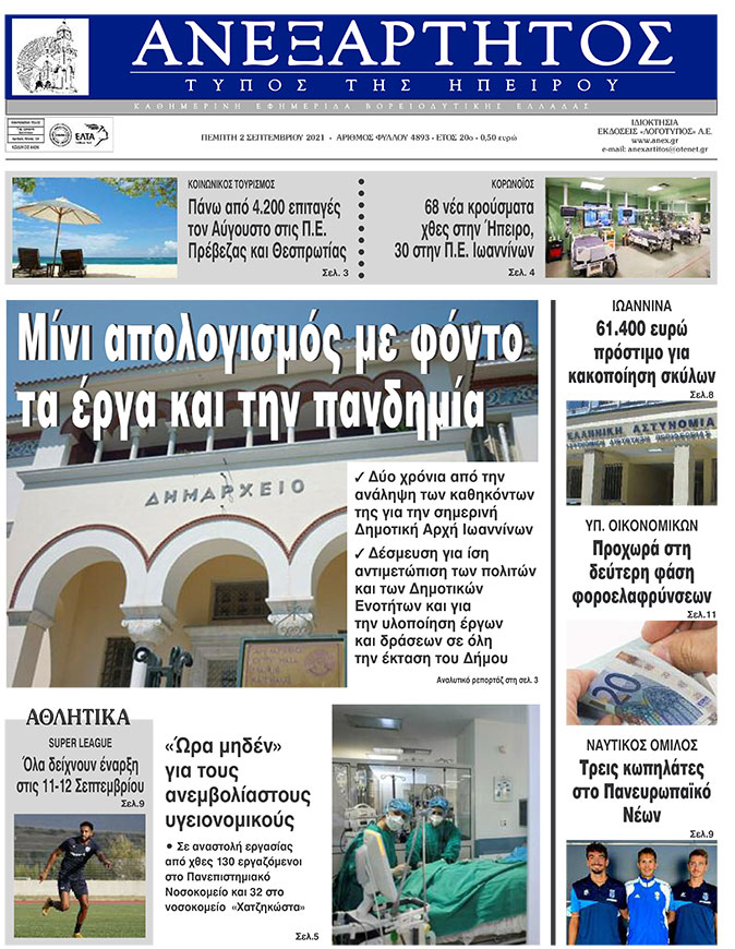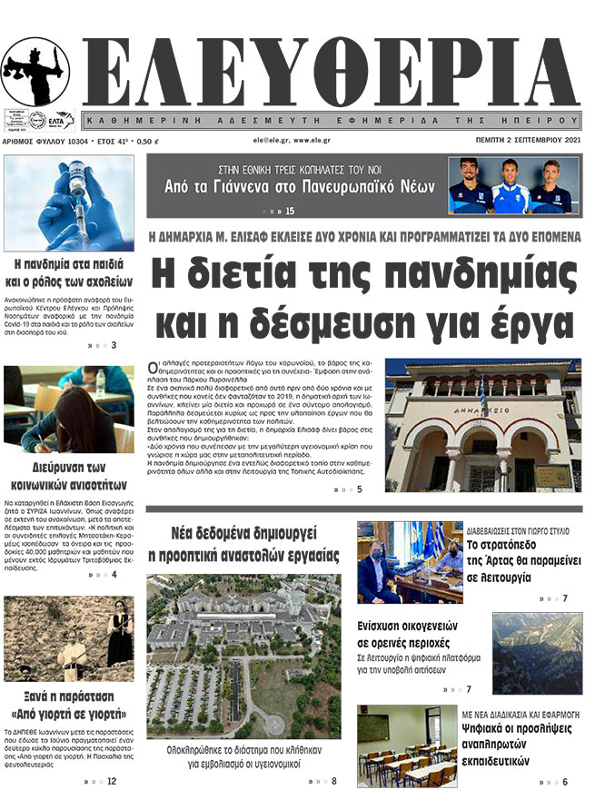 Διαβάστε στα πρωτοσέλιδα των γιαννιώτικων εφημερίδων της Πέμπτης 2 Σεπτεμβρίου