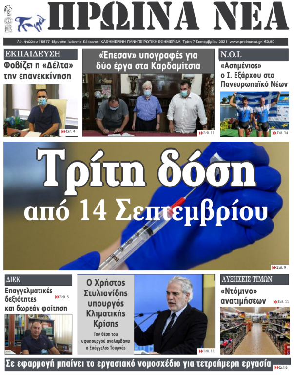 Διαβάστε στα πρωτοσέλιδα των γιαννιώτικων εφημερίδων της Τρίτης 7 Σεπτεμβρίου