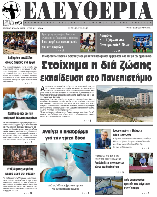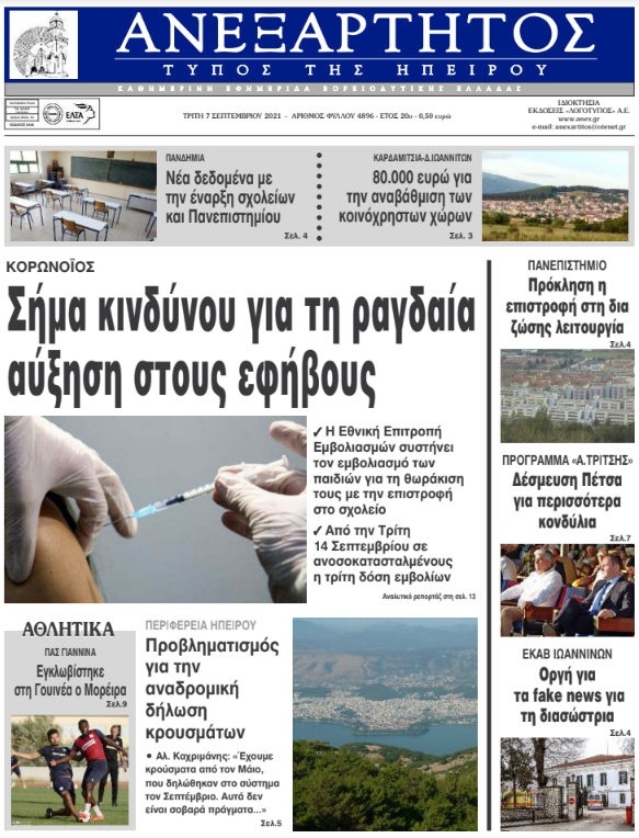 Διαβάστε στα πρωτοσέλιδα των γιαννιώτικων εφημερίδων της Τρίτης 7 Σεπτεμβρίου