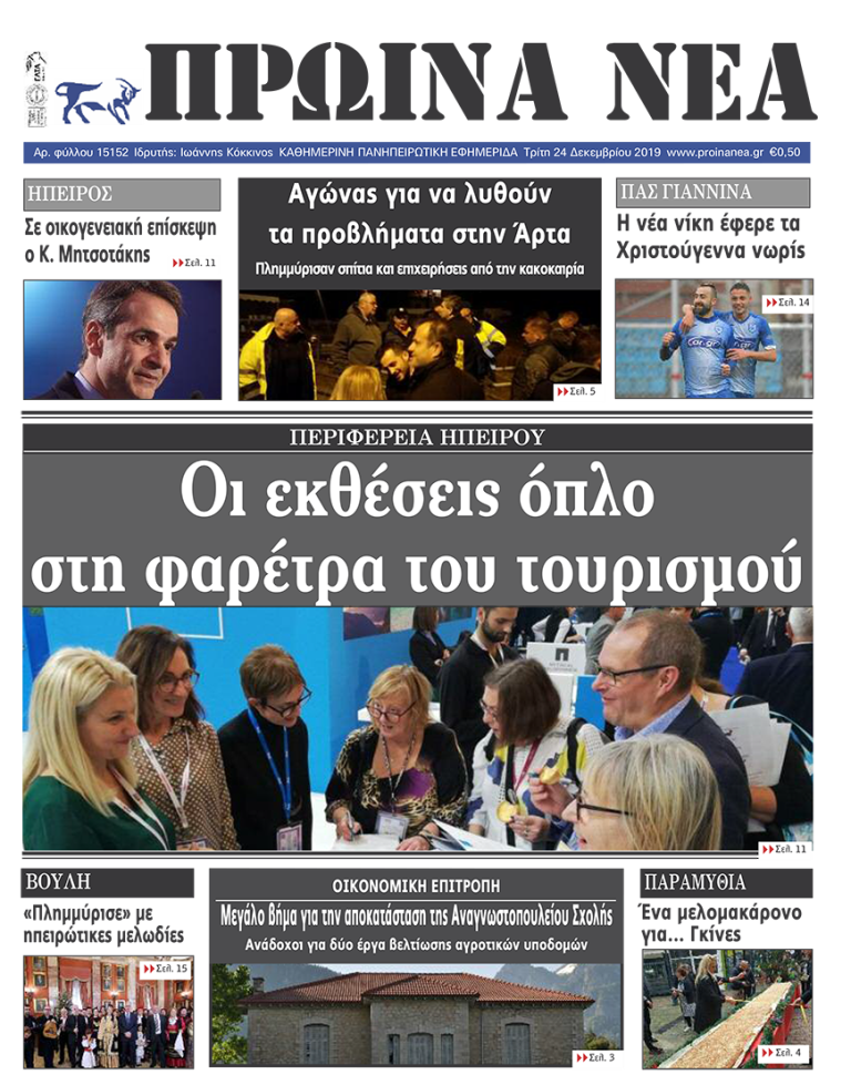 Διαβάστε στα πρωτοσέλιδα των γιαννιώτικων εφημερίδων σήμερα, Τρίτη 24 Δεκεμβρίου.
