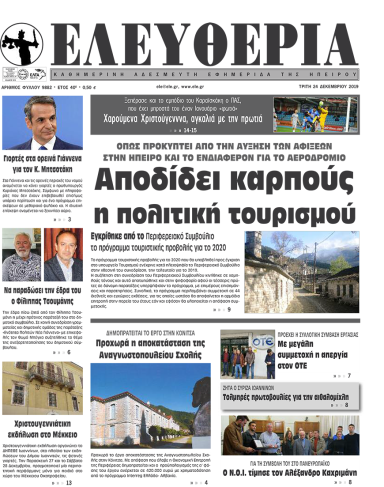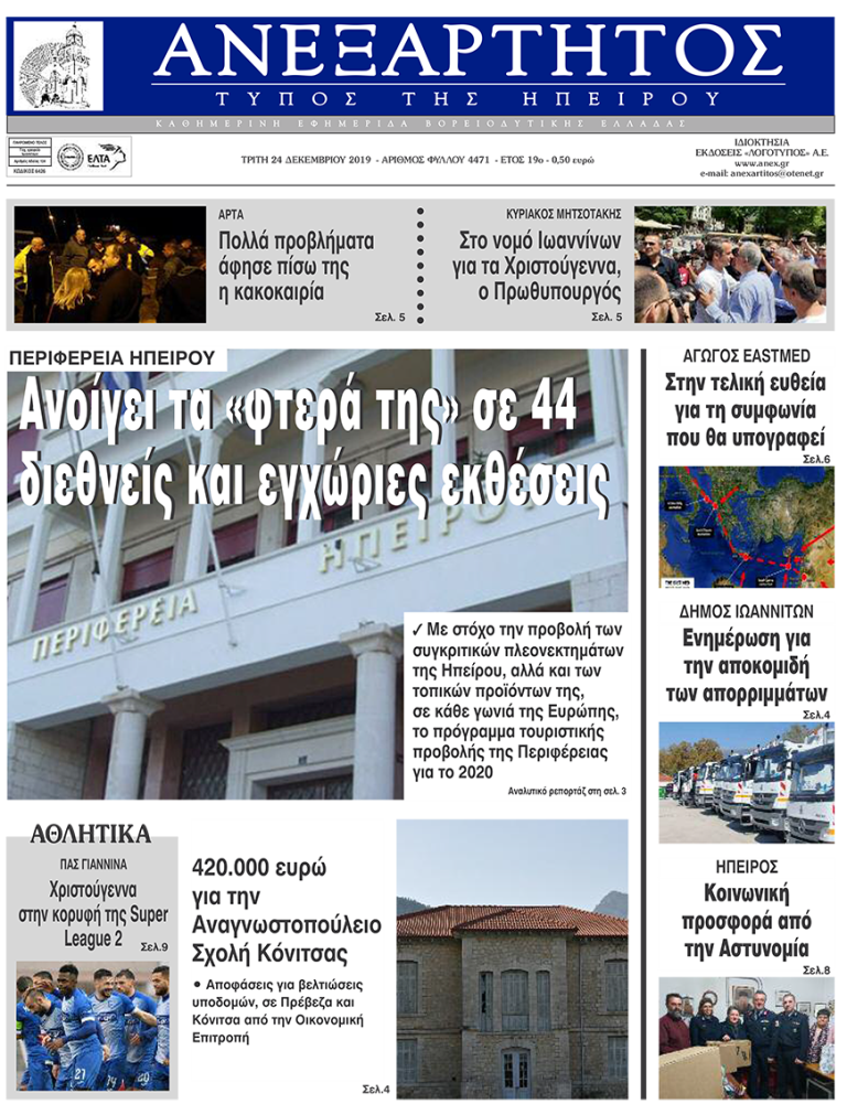Διαβάστε στα πρωτοσέλιδα των γιαννιώτικων εφημερίδων σήμερα, Τρίτη 24 Δεκεμβρίου.