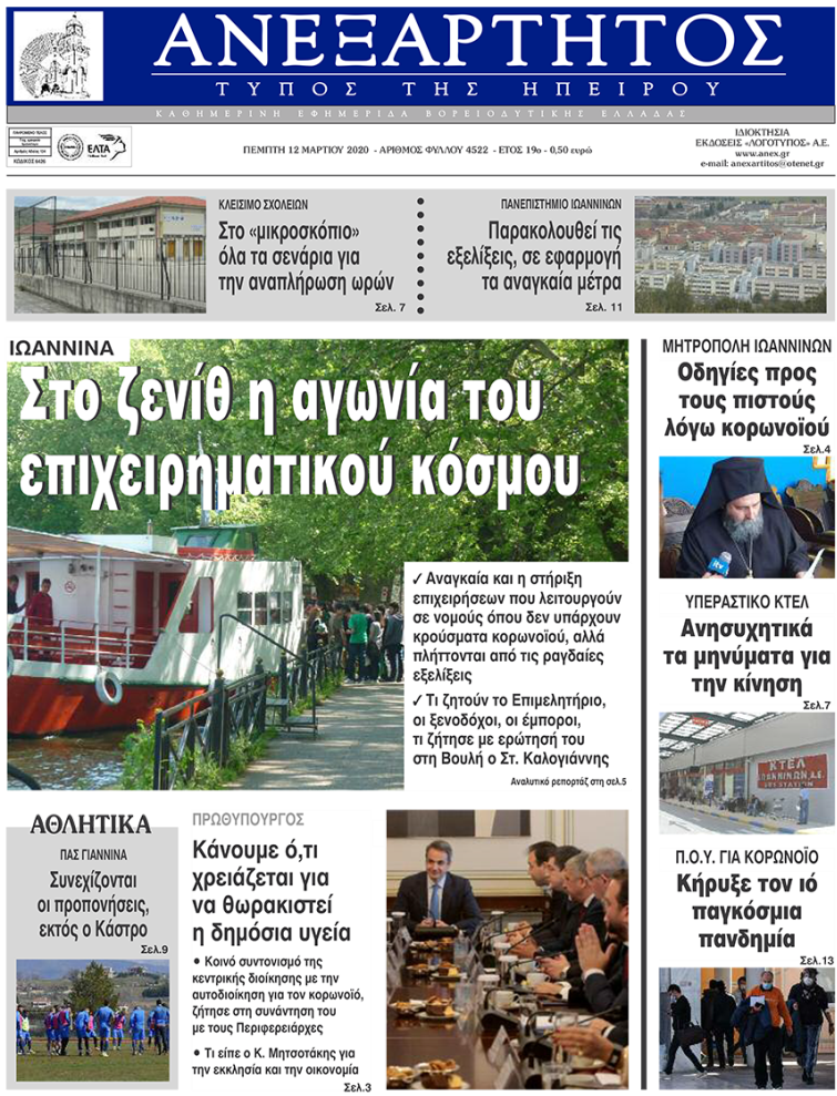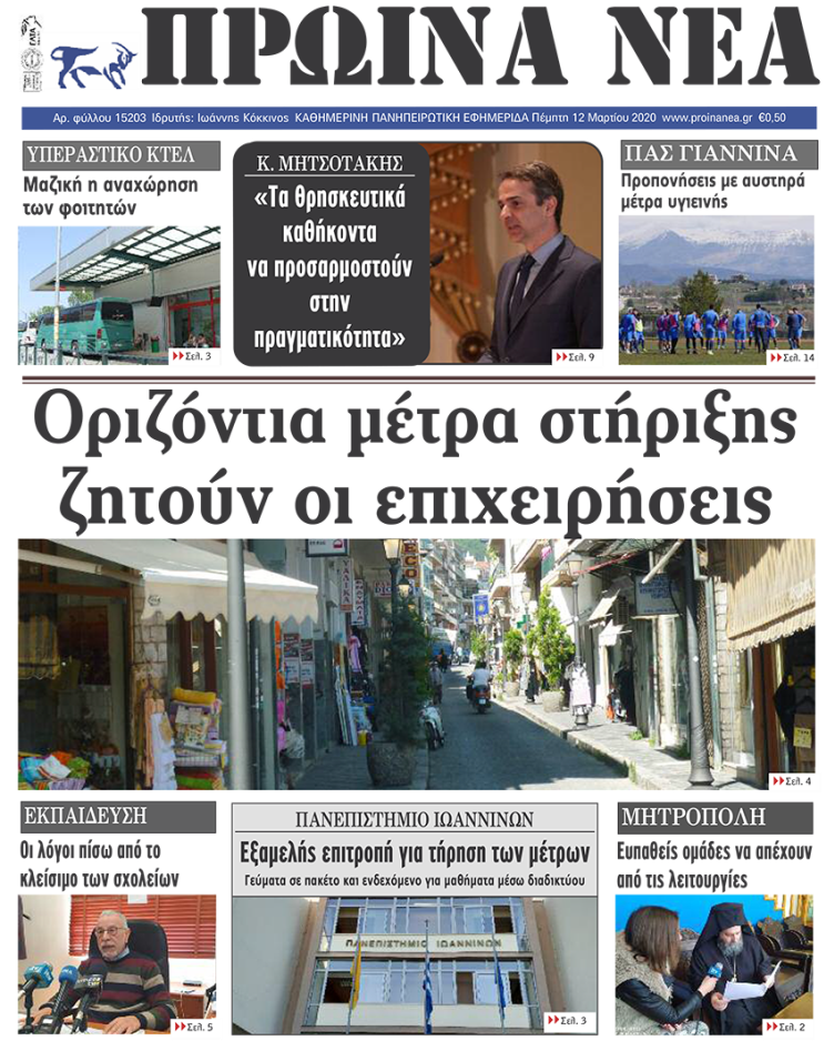 ΑρχικήΕΙΔΗΣΕΙΣΗΠΕΙΡΟΣ ΗΠΕΙΡΟΣ Τα πρωτοσέλιδα των γιαννιώτικων εφημερίδων 12.03.2020 236 FacebookTwitterWhatsAppEmailΤυπώνωViber Διαβάστε στα πρωτοσέλιδα των γιαννιώτικων εφημερίδων σήμερα, Πέμπτη 12 Μαρτίου. TagsΓΙΑΝΝΙΩΤΙΚΕΣ ΕΦΗΜΕΡΙΔΕΣΠΡΩΤΟΣΕΛΙΔΑ FacebookTwitterWhatsAppEmailΤυπώνωViber Προηγούμενο άρθροΤομ Χανκς και Ρίτα Γουίλσον προσβλήθηκαν από κορωνοϊό: «Να προσέχετε τον εαυτό σας»Επόμενο άρθροΠρόσβαση στους βοσκότοπους και τις κτηνοτροφικές εγκαταστάσεις ΣΧΕΤΙΚΑ ΑΡΘΡΑ Τα πρωτοσέλιδα των γιαννιώτικων εφημερίδων ΗΠΕΙΡΟΣ 25.11.2025 Τα πρωτοσέλιδα των γιαννιώτικων εφημερίδων ΗΠΕΙΡΟΣ 22.11.2025 Τα πρωτοσέλιδα των γιαννιώτικων εφημερίδων ΗΠΕΙΡΟΣ 21.11.2025 Τα πρωτοσέλιδα των γιαννιώτικων εφημερίδων TOP STORIES 20.11.2025 Τα πρωτοσέλιδα των γιαννιώτικων εφημερίδων ΗΠΕΙΡΟΣ 19.11.2025 Τα πρωτοσέλιδα των γιαννιώτικων εφημερίδων ΗΠΕΙΡΟΣ 18.11.2025 ΣΤΗΝ ΙΔΙΑ ΚΑΤΗΓΟΡΙΑ Εκδηλώσεις για τον ποιητή και ήρωα Λορέντζο Μαβίλη ΗΠΕΙΡΟΣ 25.11.2025 Στα Γιάννενα το 20ο Ετήσιο Συνέδριο του Δικτύου Υγιών Πόλεων ΗΠΕΙΡΟΣ 25.11.2025 Άνοδος 25 εκατοστών της στάθμης της λίμνης σε 15 ημέρες! ΗΠΕΙΡΟΣ 25.11.2025 Μαθήτρια του 3ου ΓΕΛ Ιωαννίνων πρώτη σε διαγωνισμό λογότυπου για την Επιτροπή Ισότητας ΗΠΕΙΡΟΣ 25.11.2025 Λύση μετά από δεκαετίες για Δροσιά, Πεντέλη, Ζευγάρια και Τσιφλικόπουλο ΗΠΕΙΡΟΣ 25.11.2025 Τίμησαν τη μνήμη των ηρωικών Αιτωλοακαρνανών στην «Βίγλα» Καλπακίου ΗΠΕΙΡΟΣ 25.11.2025 ΜΗ ΧΑΣΕΤΕ Άνοδος 25 εκατοστών της στάθμης της λίμνης σε 15 ημέρες! Λύση μετά από δεκαετίες για Δροσιά, Πεντέλη, Ζευγάρια και Τσιφλικόπουλο Καταδίωξη–θρίλερ στην Εγνατία: 32 κιλά κάνναβης και κοκαΐνη σε μοτοσικλέτα δραπέτη Επίδομα θέρμανσης: Λάθη στις αιτήσεις που μπορεί να «κοστίσουν» Πού θα χτυπήσει το νέο κύμα κακοκαιρίας ΔΗΜΟΦΙΛΗ Άνοδος 25 εκατοστών της στάθμης της λίμνης σε 15 ημέρες! Λύση μετά από δεκαετίες για Δροσιά, Πεντέλη, Ζευγάρια και Τσιφλικόπουλο Τηλεφωνικές απάτες, με βροχή κλήσεων από Πολωνία και Βρετανία Τα πρωτοσέλιδα των γιαννιώτικων εφημερίδων Στο Άμπου Ντάμπι το νέο πεδίο μυστικών επαφών για τον πόλεμο στην Ουκρανία