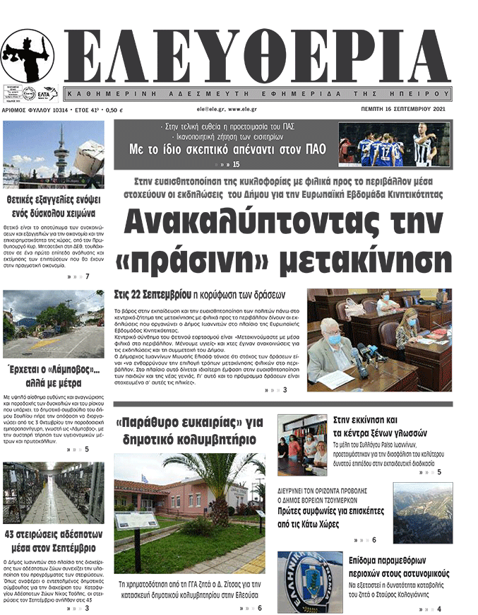 ΑρχικήTOP STORIES TOP STORIESΗΠΕΙΡΟΣ Τα πρωτοσέλιδα των γιαννιώτικων εφημερίδων 16.09.2021 58 FacebookTwitterWhatsAppEmailΤυπώνωViber Διαβάστε στα πρωτοσέλιδα των γιαννιώτικων εφημερίδων της Πέμπτης 16 Σεπτεμβρίου TagsΓΙΑΝΝΙΩΤΙΚΕΣ ΕΦΗΜΕΡΙΔΕΣΠΡΩΤΟΣΕΛΙΔΑ FacebookTwitterWhatsAppEmailΤυπώνωViber Προηγούμενο άρθροΝα αλλάξει η νέο-οθωμανική πολιτική της Αγκυρας για Αγία Σοφία, Μονή της ΧώραςΕπόμενο άρθρο«Παράθυρο ευκαιρίας» για δημοτικό κολυμβητήριο ΣΧΕΤΙΚΑ ΑΡΘΡΑ Τα πρωτοσέλιδα των γιαννιώτικων εφημερίδων TOP STORIES 08.11.2025 Τα πρωτοσέλιδα των γιαννιώτικων εφημερίδων ΗΠΕΙΡΟΣ 07.11.2025 Τα πρωτοσέλιδα των γιαννιώτικων εφημερίδων ΗΠΕΙΡΟΣ 06.11.2025 Τα πρωτοσέλιδα των γιαννιώτικων εφημερίδων ΗΠΕΙΡΟΣ 05.11.2025 Τα πρωτοσέλιδα των γιαννιώτικων εφημερίδων ΗΠΕΙΡΟΣ 04.11.2025 Τα πρωτοσέλιδα των γιαννιώτικων εφημερίδων TOP STORIES 01.11.2025 ΣΤΗΝ ΙΔΙΑ ΚΑΤΗΓΟΡΙΑ Τα πρωτοσέλιδα των γιαννιώτικων εφημερίδων TOP STORIES 08.11.2025 Μαθητές του 5ου Γυμνασίου Ιωαννίνων στην κορυφή του Μιτσικελίου ΗΠΕΙΡΟΣ 07.11.2025 Επίτιμος Διδάκτορας του Τμήματος Φιλολογίας ο Γιώργος Κεχαγιόγλου ΗΠΕΙΡΟΣ 07.11.2025 Οι ναυαγοσωστικές δαπάνες «πνίγουν» τους δήμους ΗΠΕΙΡΟΣ 07.11.2025 Ενημερωτική ημερίδα στα Ιωάννινα για τη δωρεά και μεταμόσχευση οργάνων ΗΠΕΙΡΟΣ 07.11.2025 Εγκαίνια στο Κατάστημα Αναμνηστικών του Πανεπιστημίου Ιωαννίνων ΗΠΕΙΡΟΣ 07.11.2025 ΜΗ ΧΑΣΕΤΕ Τα πρωτοσέλιδα των γιαννιώτικων εφημερίδων Οι ναυαγοσωστικές δαπάνες «πνίγουν» τους δήμους Έκτακτο δελτίο επιδείνωσης από την ΕΜΥ – Πού θα βρέχει το επόμενο τριήμερο Μπαλωθιές τέλος στην Κρήτη – Τα μέτρα για την παράνομη οπλοκατοχή Χωρίς πινακίδες παραμένουν χιλιάδες δίκυκλα ΔΗΜΟΦΙΛΗ Γ. ΣΤΥΛΙΟΣ -Μείωση φόρων που ενισχύει το πραγματικό εισόδημα Η Ευρωπαϊκή Ένωση στηρίζει την καθαρή μετάβαση Τα του Καίσαρος… Ιταλία: Αυξάνονται οι αιωνόβιοι στη χώρα -2.000 περισσότεροι σε σχέση με πέρυσι Τα πρωτοσέλιδα των γιαννιώτικων εφημερίδων