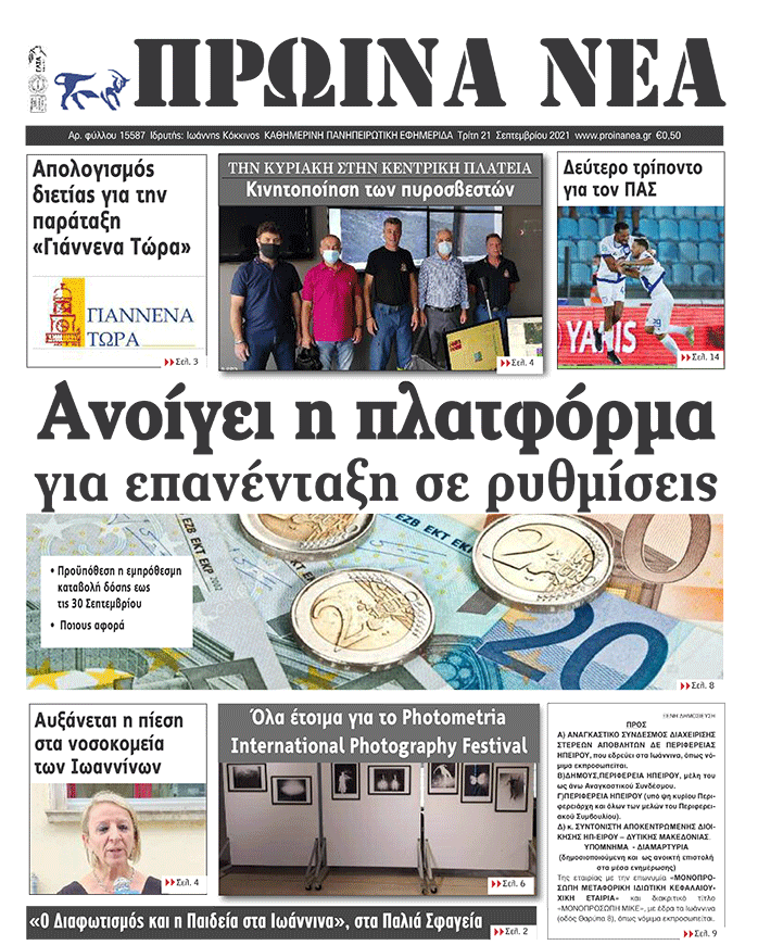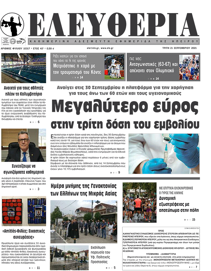 ΑρχικήTOP STORIES TOP STORIESΗΠΕΙΡΟΣ Τα πρωτοσέλιδα των γιαννιώτικων εφημερίδων 21.09.2021 90 FacebookTwitterWhatsAppEmailΤυπώνωViber Διαβάστε στα πρωτοσέλιδα των γιαννιώτικων εφημερίδων της Τρίτης 21 Σεπτεμβρίου TagsΓΙΑΝΝΙΩΤΙΚΕΣ ΕΦΗΜΕΡΙΔΕΣΠΡΩΤΟΣΕΛΙΔΑ FacebookTwitterWhatsAppEmailΤυπώνωViber Προηγούμενο άρθροΝέο… τηλεγράφημαΕπόμενο άρθροΔυνατότητα επανένταξης στις 100 και 120 δόσεις ΣΧΕΤΙΚΑ ΑΡΘΡΑ Τα πρωτοσέλιδα των γιαννιώτικων εφημερίδων TOP STORIES 02.12.2025 Τα πρωτοσέλιδα των γιαννιώτικων εφημερίδων ΗΠΕΙΡΟΣ 29.11.2025 Τα πρωτοσέλιδα των γιαννιώτικων εφημερίδων ΗΠΕΙΡΟΣ 28.11.2025 Τα πρωτοσέλιδα των γιαννιώτικων εφημερίδων ΗΠΕΙΡΟΣ 27.11.2025 Τα πρωτοσέλιδα των γιαννιώτικων εφημερίδων ΗΠΕΙΡΟΣ 26.11.2025 Τα πρωτοσέλιδα των γιαννιώτικων εφημερίδων ΗΠΕΙΡΟΣ 25.11.2025 ΣΤΗΝ ΙΔΙΑ ΚΑΤΗΓΟΡΙΑ «Θα κάνουμε Χριστούγεννα στα μπλόκα» λένε οι αγρότες ΗΠΕΙΡΟΣ 02.12.2025 Μεγάλες ζημιές από πυρκαγιά σε διαμέρισμα στους Αμπελόκηπους ΗΠΕΙΡΟΣ 02.12.2025 Αυτοψία Τσίμαρη στις πληγείσες περιοχές των Τζουμέρκων ΗΠΕΙΡΟΣ 02.12.2025 Στα Ιωάννινα το 1ο Πολυθεματικό Επιστημονικό Συνέδριο ΟΤΑ ΗΠΕΙΡΟΣ 02.12.2025 800.000 ευρώ για το οδικό δίκτυο Καρδαμιτσίων και Νέας Ζωής ΗΠΕΙΡΟΣ 02.12.2025 Φωτιά σε πολυκατοικία στους Αμπελόκηπους ΗΠΕΙΡΟΣ 02.12.2025 ΜΗ ΧΑΣΕΤΕ «Θα κάνουμε Χριστούγεννα στα μπλόκα» λένε οι αγρότες Μεγάλες ζημιές από πυρκαγιά σε διαμέρισμα στους Αμπελόκηπους 800.000 ευρώ για το οδικό δίκτυο Καρδαμιτσίων και Νέας Ζωής Απολογισμός Οδικής Ασφάλειας για τον Νοέμβριο στην Ήπειρο Δώρο Χριστουγέννων: Γιατί φέτος θα δοθεί νωρίτερα και πώς υπολογίζεται ΔΗΜΟΦΙΛΗ Στα Ιωάννινα το 1ο Πολυθεματικό Επιστημονικό Συνέδριο ΟΤΑ Εξιχνιάστηκαν διαρρήξεις εκκλησιών στην Άρτα Επιστροφή στις (κακές) εργοστασιακές ρυθμίσεις Απώλεια για τον ΠΑΣ η παραίτηση του Ντάσιου 1 στις 4 γυναίκες πιστεύει ότι οι άνδρες τυγχάνουν καλύτερης μεταχείρισης από τους επαγγελματίες υγείας