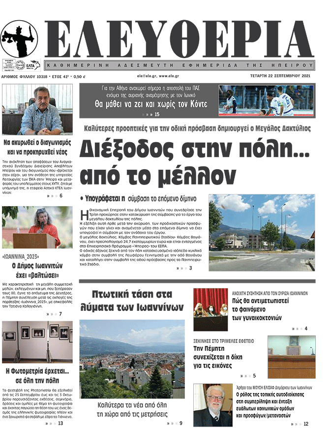 ΑρχικήTOP STORIES TOP STORIESΗΠΕΙΡΟΣ Τα πρωτοσέλιδα των γιαννιώτικων εφημερίδων 22.09.2021 93 FacebookTwitterWhatsAppEmailΤυπώνωViber Διαβάστε στα πρωτοσέλιδα των γιαννιώτικων εφημερίδων της Τετάρτης 22 Σεπτεμβρίου TagsΓΙΑΝΝΙΩΤΙΚΕΣ ΕΦΗΜΕΡΙΔΕΣΠΡΩΤΟΣΕΛΙΔΑ FacebookTwitterWhatsAppEmailΤυπώνωViber Προηγούμενο άρθροΠρωτοβουλία ενημέρωσης για το ΑλτσχάιμερΕπόμενο άρθροΠώς θα αντιμετωπιστεί το φαινόμενο των γυναικοκτονιών ΣΧΕΤΙΚΑ ΑΡΘΡΑ Τα πρωτοσέλιδα των γιαννιώτικων εφημερίδων TOP STORIES 30.10.2025 Τα πρωτοσέλιδα των γιαννιώτικων εφημερίδων ΗΠΕΙΡΟΣ 28.10.2025 Τα πρωτοσέλιδα των γιαννιώτικων εφημερίδων ΗΠΕΙΡΟΣ 25.10.2025 Τα πρωτοσέλιδα των γιαννιώτικων εφημερίδων ΗΠΕΙΡΟΣ 24.10.2025 Τα πρωτοσέλιδα των γιαννιώτικων εφημερίδων ΗΠΕΙΡΟΣ 23.10.2025 Τα πρωτοσέλιδα των γιαννιώτικων εφημερίδων ΗΠΕΙΡΟΣ 22.10.2025 ΣΤΗΝ ΙΔΙΑ ΚΑΤΗΓΟΡΙΑ Με ηλεκτροκίνητο αποφρακτικό όχημα ενισχύει τις υπηρεσίες του ο Δήμος Ζίτσας ΗΠΕΙΡΟΣ 30.10.2025 Στ. Ζούμπας: Η περιφέρεια δεν αντέχει άλλη απομόνωση ΗΠΕΙΡΟΣ 30.10.2025 Απαλλαγή ΕΝΦΙΑ 3 έτη για τους πυρόπληκτους του Ν. Πρεβέζης ΗΠΕΙΡΟΣ 30.10.2025 Αίτημα για ένταξη της Μονάδας Μεσογειακής Αναιμίας στον νέο Οργανισμό του ΠΓΝΙ ΗΠΕΙΡΟΣ 30.10.2025 Έντονες αντιδράσεις σε Ζαγόρι και Ζίτσα για το κλείσιμο ταχυδρομικών γραφείων ΗΠΕΙΡΟΣ 30.10.2025 Ο πολιτισμός πιο κοντά στις ευάλωτες κοινωνικές ομάδες ΗΠΕΙΡΟΣ 30.10.2025 ΜΗ ΧΑΣΕΤΕ Ο πολιτισμός στο επίκεντρο της αναπτυξιακής στρατηγικής του Δήμου Ιωαννιτών Ετοιμάζει αλλαγές αντιδημάρχων ο Θ. Μπέγκας Πληρότητες-ρεκόρ στα Ιωάννινα το τετραήμερο της 28ης Οκτωβρίου – Προκλήσεις στην εστίαση και τις υποδομές Τα πρωτοσέλιδα των γιαννιώτικων εφημερίδων Οδηγείται σε «ναυάγιο» το έργο των led; ΔΗΜΟΦΙΛΗ Πέντε νέοι ύποπτοι συνελήφθησαν για τη ληστεία στο Λούβρο – Άφαντα τα κλοπιμαία Επιστροφή ενοικίου – επίδομα 250 ευρώ: Νωρίτερα η καταβολή τους Στ. Ζούμπας: Η περιφέρεια δεν αντέχει άλλη απομόνωση Τι πρέπει να ξέρουμε για τη ρίψη εμβολίων για τη Λύσσα Επιστήμονες, τεχνοκράτες και πολιτικοί στο επιστημονικό συμβούλιο του Ινστιτούτου Τσίπρα