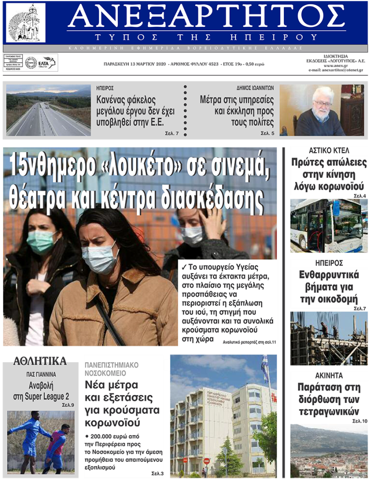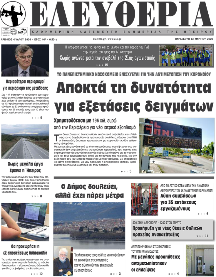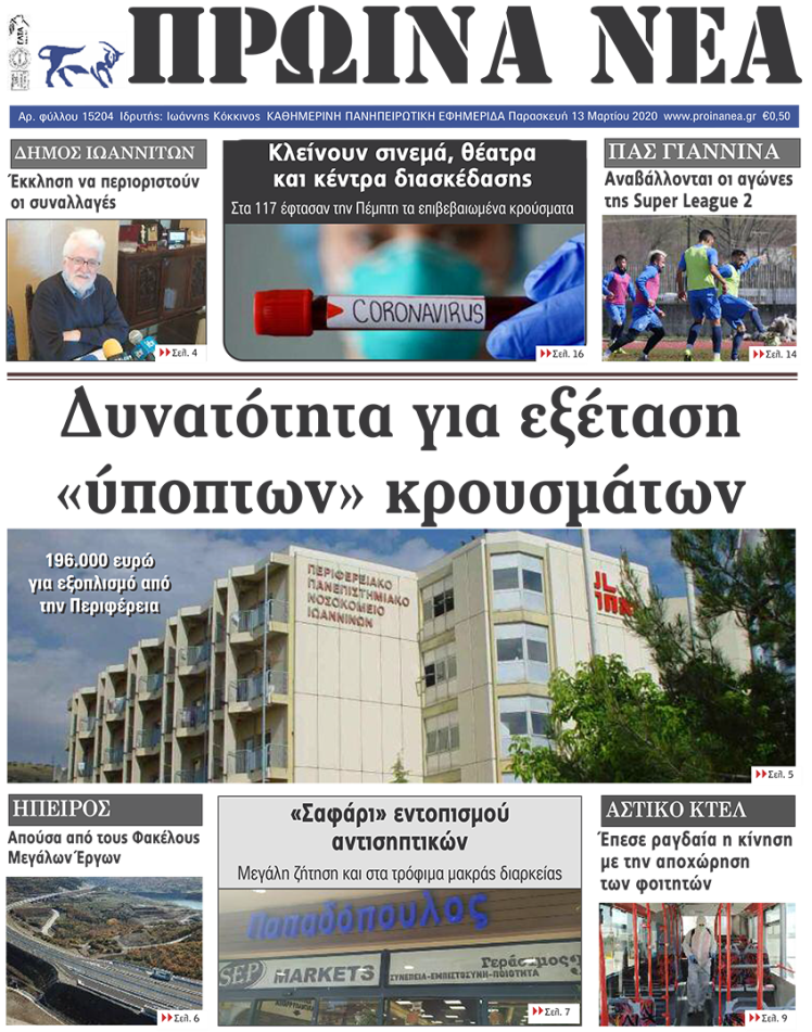 ΑρχικήΕΙΔΗΣΕΙΣΗΠΕΙΡΟΣ ΗΠΕΙΡΟΣ Τα πρωτοσέλιδα των γιαννιώτικων εφημερίδων 13.03.2020 223 FacebookTwitterWhatsAppEmailΤυπώνωViber Διαβάστε στα πρωτοσέλιδα των γιαννιώτικων εφημερίδων σήμερα, Παρασκευή 13 Μαρτίου. TagsΓΙΑΝΝΙΩΤΙΚΕΣ ΕΦΗΜΕΡΙΔΕΣΠΡΩΤΟΣΕΛΙΔΑ FacebookTwitterWhatsAppEmailΤυπώνωViber Προηγούμενο άρθροΣήμερα η ορκωμοσία της Α. ΣακελλαροπούλουΕπόμενο άρθροΑπό το διάστημα φαίνονται τα τεράστια νεκροταφεία στο Ιράν για τα θύματα του κορωνοϊού ΣΧΕΤΙΚΑ ΑΡΘΡΑ Τα πρωτοσέλιδα των γιαννιώτικων εφημερίδων TOP STORIES 18.11.2025 Τα πρωτοσέλιδα των γιαννιώτικων εφημερίδων ΗΠΕΙΡΟΣ 15.11.2025 Τα πρωτοσέλιδα των γιαννιώτικων εφημερίδων ΗΠΕΙΡΟΣ 14.11.2025 Τα πρωτοσέλιδα των γιαννιώτικων εφημερίδων ΗΠΕΙΡΟΣ 13.11.2025 Τα πρωτοσέλιδα των γιαννιώτικων εφημερίδων ΗΠΕΙΡΟΣ 12.11.2025 Τα πρωτοσέλιδα των γιαννιώτικων εφημερίδων ΗΠΕΙΡΟΣ 11.11.2025 ΣΤΗΝ ΙΔΙΑ ΚΑΤΗΓΟΡΙΑ Κεραυνός άνοιξε τρύπα σε στέγη τριώροφης πολυκατοικίας ΗΠΕΙΡΟΣ 18.11.2025 Δέντρο έπεσε σε κατάστημα στην παραλιακή της Ηγουμενίτσας ΗΠΕΙΡΟΣ 18.11.2025 Προσβάσεις – ντροπή στα σχολεία στο Τσιφλικόπουλο ΗΠΕΙΡΟΣ 18.11.2025 Βελτίωση και επέκταση οριζόντιας σήμανσης ΗΠΕΙΡΟΣ 18.11.2025 Πράσινο φως για την κατασκευή νέου Νηπιαγωγείου στα Γιάννενα ΗΠΕΙΡΟΣ 18.11.2025 250.000 ευρώ για νέες ψηφιακές υπηρεσίες στον Δήμο Ιωαννιτών ΗΠΕΙΡΟΣ 18.11.2025 ΜΗ ΧΑΣΕΤΕ Προσβάσεις – ντροπή στα σχολεία στο Τσιφλικόπουλο 250.000 ευρώ για νέες ψηφιακές υπηρεσίες στον Δήμο Ιωαννιτών ΕΜΥ: Επικίνδυνες βροχές σε Ιόνιο, Ήπειρο και Αιτωλοακαρνανία Στο επίκεντρο ακρίβεια, στεγαστική πολιτική και ενεργειακές συμφωνίες «Πάγωσε» το σχέδιο, όχι τα προβλήματα ΔΗΜΟΦΙΛΗ Προσβάσεις – ντροπή στα σχολεία στο Τσιφλικόπουλο Στη φυλακή ο αρχηγός και ο υπαρχηγός του κυκλώματος με τις απάτες σε καζίνο Ανατροπή με τον θάνατο του 4χρονου στην Αχαΐα: «Πέσαμε από τη γουρούνα», ομολόγησε ο θείος του Μονιμοποιούνται 423 Πυροσβέστες Πενταετούς Υποχρέωσης 250.000 ευρώ για νέες ψηφιακές υπηρεσίες στον Δήμο Ιωαννιτών