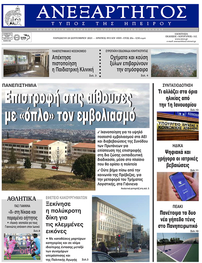 ΑρχικήTOP STORIES TOP STORIESΗΠΕΙΡΟΣ Τα πρωτοσέλιδα των γιαννιώτικων εφημερίδων 24.09.2021 75 FacebookTwitterWhatsAppEmailΤυπώνωViber Διαβάστε στα πρωτοσέλιδα των γιαννιώτικων εφημερίδων της Παρασκευής 24 Σεπτεμβρίου TagsΓΙΑΝΝΙΩΤΙΚΕΣ ΕΦΗΜΕΡΙΔΕΣΠΡΩΤΟΣΕΛΙΔΑ FacebookTwitterWhatsAppEmailΤυπώνωViber Προηγούμενο άρθροΜητσοτάκης: Συμβάλλουμε στο παγκόσμιο τείχος ανοσίαςΕπόμενο άρθροΔυνατά φιλικά με Ολυμπιακό και Παναθηναϊκό για τον ΠΑΣ Γιάννινα WBC ΣΧΕΤΙΚΑ ΑΡΘΡΑ Τα πρωτοσέλιδα των γιαννιώτικων εφημερίδων ΗΠΕΙΡΟΣ 04.11.2025 Τα πρωτοσέλιδα των γιαννιώτικων εφημερίδων TOP STORIES 01.11.2025 Τα πρωτοσέλιδα των γιαννιώτικων εφημερίδων ΗΠΕΙΡΟΣ 31.10.2025 Τα πρωτοσέλιδα των γιαννιώτικων εφημερίδων ΗΠΕΙΡΟΣ 30.10.2025 Τα πρωτοσέλιδα των γιαννιώτικων εφημερίδων ΗΠΕΙΡΟΣ 28.10.2025 Τα πρωτοσέλιδα των γιαννιώτικων εφημερίδων ΗΠΕΙΡΟΣ 25.10.2025 ΣΤΗΝ ΙΔΙΑ ΚΑΤΗΓΟΡΙΑ Η ΠΕΝΤΕ Α.Ε. απαντά στις καταγγελίες και υπερασπίζεται τη διαφάνεια στη συμφωνία με την «ΠΑΠΑΓΕΩΡΓΙΟΥ» ΗΠΕΙΡΟΣ 04.11.2025 Νέα δημοτική αγορά και παρεμβάσεις αναβάθμισης στην Αγία Μαρίνα ΗΠΕΙΡΟΣ 04.11.2025 Συμβολικές κινητοποιήσεις σε Μέτσοβο και Πωγώνι για τα καταστήματα ΕΛΤΑ ΗΠΕΙΡΟΣ 04.11.2025 Κινητοποίηση για τη διατήρηση του καταστήματος των ΕΛΤΑ Πραμάντων ΗΠΕΙΡΟΣ 04.11.2025 Κανένα θανατηφόρο τροχαίο φέτος τον Οκτώβριο TOP STORIES 04.11.2025 Εξιχνιάστηκε κλοπή από επιχείρηση στην Πρέβεζα ΗΠΕΙΡΟΣ 04.11.2025 ΜΗ ΧΑΣΕΤΕ Νέα δημοτική αγορά και παρεμβάσεις αναβάθμισης στην Αγία Μαρίνα Κανένα θανατηφόρο τροχαίο φέτος τον Οκτώβριο Ανοίγει η πλατφόρμα για το επίδομα θέρμανσης ΕΛΤΑ – Τρίμηνη αναστολή και κινητοποιήσεις στην Ήπειρο Εισαγγελική εντολή για την άμεση απομάκρυνση αποβλήτων ΔΗΜΟΦΙΛΗ Πορτοκαλί προειδοποίηση από την ΕΜΥ: Πού θα χτυπήσει η κακοκαιρία Μαύρη τρύπα σε απόσταση 10 δισ. ετών φωτός «έλαμψε» όσο 10 τρισεκ. ήλιοι Σαρώνει ο τυφώνας Καλμάγκι στις Φιλιππίνες Μαρινάκης: Η παραίτηση Σκλήκα δεν συνεπάγεται υπαναχώρηση 57χρονος μοτοσικλετιστής έχασε τη ζωή του μετά από σύγκρουση με αγριόχοιρο