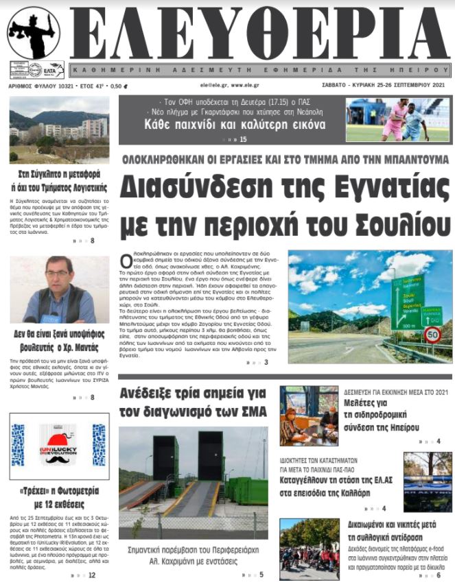 ΑρχικήΕΙΔΗΣΕΙΣΗΠΕΙΡΟΣ ΗΠΕΙΡΟΣ Τα πρωτοσέλιδα των γιαννιώτικων εφημερίδων 25.09.2021 101 FacebookTwitterWhatsAppEmailΤυπώνωViber Διαβάστε στα πρωτοσέλιδα των γιαννιώτικων εφημερίδων του Σαββατοκύριακου 25-26 Σεπτεμβρίου TagsΓΙΑΝΝΙΩΤΙΚΕΣ ΕΦΗΜΕΡΙΔΕΣΠΡΩΤΟΣΕΛΙΔΑ FacebookTwitterWhatsAppEmailΤυπώνωViber Προηγούμενο άρθρο«Ελαττωματικός» ο ψηλότερος ουρανοξύστης της Νέας ΥόρκηςΕπόμενο άρθροΚάθε παιχνίδι και καλύτερη εικόνα ΣΧΕΤΙΚΑ ΑΡΘΡΑ Τα πρωτοσέλιδα των γιαννιώτικων εφημερίδων TOP STORIES 02.12.2025 Τα πρωτοσέλιδα των γιαννιώτικων εφημερίδων ΗΠΕΙΡΟΣ 29.11.2025 Τα πρωτοσέλιδα των γιαννιώτικων εφημερίδων ΗΠΕΙΡΟΣ 28.11.2025 Τα πρωτοσέλιδα των γιαννιώτικων εφημερίδων ΗΠΕΙΡΟΣ 27.11.2025 Τα πρωτοσέλιδα των γιαννιώτικων εφημερίδων ΗΠΕΙΡΟΣ 26.11.2025 Τα πρωτοσέλιδα των γιαννιώτικων εφημερίδων ΗΠΕΙΡΟΣ 25.11.2025 ΣΤΗΝ ΙΔΙΑ ΚΑΤΗΓΟΡΙΑ «Θα κάνουμε Χριστούγεννα στα μπλόκα» λένε οι αγρότες ΗΠΕΙΡΟΣ 02.12.2025 Μεγάλες ζημιές από πυρκαγιά σε διαμέρισμα στους Αμπελόκηπους ΗΠΕΙΡΟΣ 02.12.2025 Αυτοψία Τσίμαρη στις πληγείσες περιοχές των Τζουμέρκων ΗΠΕΙΡΟΣ 02.12.2025 Στα Ιωάννινα το 1ο Πολυθεματικό Επιστημονικό Συνέδριο ΟΤΑ ΗΠΕΙΡΟΣ 02.12.2025 800.000 ευρώ για το οδικό δίκτυο Καρδαμιτσίων και Νέας Ζωής ΗΠΕΙΡΟΣ 02.12.2025 Φωτιά σε πολυκατοικία στους Αμπελόκηπους ΗΠΕΙΡΟΣ 02.12.2025 ΜΗ ΧΑΣΕΤΕ «Θα κάνουμε Χριστούγεννα στα μπλόκα» λένε οι αγρότες Μεγάλες ζημιές από πυρκαγιά σε διαμέρισμα στους Αμπελόκηπους 800.000 ευρώ για το οδικό δίκτυο Καρδαμιτσίων και Νέας Ζωής Απολογισμός Οδικής Ασφάλειας για τον Νοέμβριο στην Ήπειρο Δώρο Χριστουγέννων: Γιατί φέτος θα δοθεί νωρίτερα και πώς υπολογίζεται ΔΗΜΟΦΙΛΗ Έρχεται σημαντική αλλαγή του καιρού από την Τετάρτη Υποχώρησε στο 2,9% ο πληθωρισμός στην Ελλάδα φέτος τον Νοέμβριο Επίδομα θέρμανσης: Σε πόσες ημέρες κλείνουν οι αιτήσεις «Θα κάνουμε Χριστούγεννα στα μπλόκα» λένε οι αγρότες Θερμότερος από το κανονικό ο φετινός Νοέμβριος