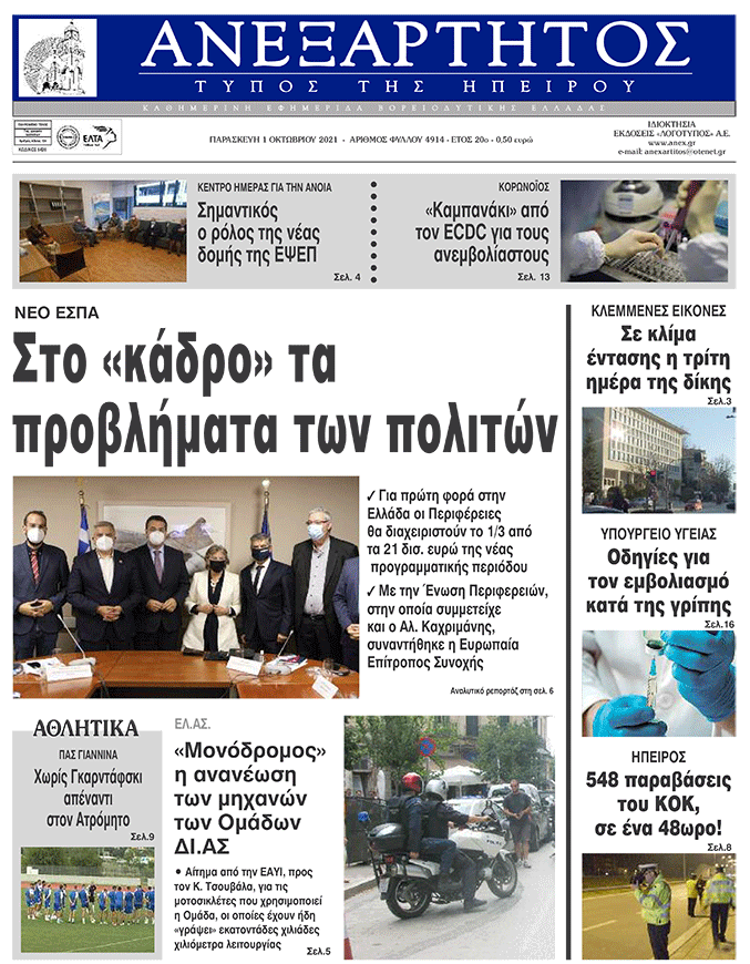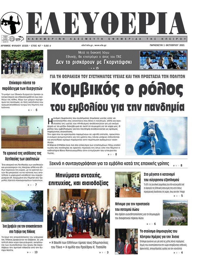 Διαβάστε στα πρωτοσέλιδα τ ων γιαννιώτικων εφημερίδων της Παρασκευής 1 Οκτωβρίου
