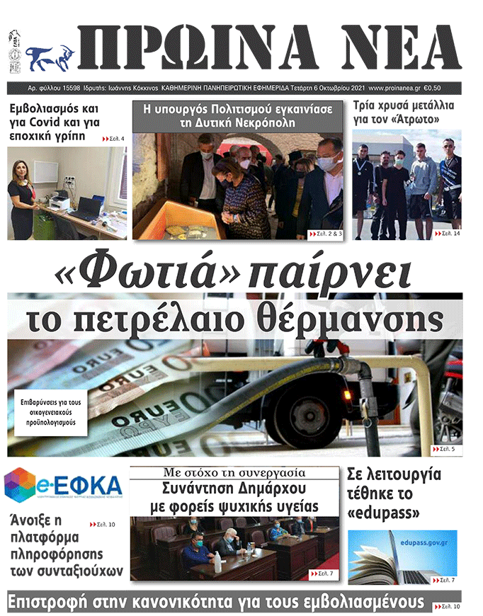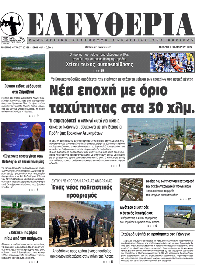 ΑρχικήTOP STORIES TOP STORIESΗΠΕΙΡΟΣ Τα πρωτοσέλιδα των γιαννιώτικων εφημερίδων 06.10.2021 76 FacebookTwitterWhatsAppEmailΤυπώνωViber Διαβάστε στα πρωτοσέλιδα των γιαννιώτικων εφημερίδων της Τετάρτης 6 Οκτωβρίου TagsΓΙΑΝΝΙΩΤΙΚΕΣ ΕΦΗΜΕΡΙΔΕΣΠΡΩΤΟΣΕΛΙΔΑ FacebookTwitterWhatsAppEmailΤυπώνωViber Προηγούμενο άρθροΘΑΝ. ΠΑΠΑΔΟΠΟΥΛΟΣ-«Θα κρυώσει ο κόσμος εάν δεν μειώσουν τον ειδικό φόρο»Επόμενο άρθροΑυτοψία στη Δρακόλιμνη, όπου τίποτε δεν άλλαξε… ΣΧΕΤΙΚΑ ΑΡΘΡΑ Τα πρωτοσέλιδα των γιαννιώτικων εφημερίδων TOP STORIES 11.11.2025 Τα πρωτοσέλιδα των γιαννιώτικων εφημερίδων TOP STORIES 08.11.2025 Τα πρωτοσέλιδα των γιαννιώτικων εφημερίδων ΗΠΕΙΡΟΣ 07.11.2025 Τα πρωτοσέλιδα των γιαννιώτικων εφημερίδων ΗΠΕΙΡΟΣ 06.11.2025 Τα πρωτοσέλιδα των γιαννιώτικων εφημερίδων ΗΠΕΙΡΟΣ 05.11.2025 Τα πρωτοσέλιδα των γιαννιώτικων εφημερίδων ΗΠΕΙΡΟΣ 04.11.2025 ΣΤΗΝ ΙΔΙΑ ΚΑΤΗΓΟΡΙΑ Ενημερωτική δράση για τον σακχαρώδη διαβήτη στα Ιωάννινα ΗΠΕΙΡΟΣ 11.11.2025 Συνελήφθη αλλοδαπός διωκόμενος στην Κακαβιά ΗΠΕΙΡΟΣ 11.11.2025 Κατασχέθηκαν 45 αρνιά στην Πρέβεζα – Δύο συλλήψεις ΗΠΕΙΡΟΣ 11.11.2025 43χρονος βρέθηκε νεκρός εντός Ι.Χ. στο Τέροβο ΗΠΕΙΡΟΣ 11.11.2025 Επί τάπητος υποδομές, περιβάλλον και ΤΠΣ ΗΠΕΙΡΟΣ 11.11.2025 Επίδομα θέρμανσης: Νέες οδηγίες της ΑΑΔΕ TOP STORIES 11.11.2025 ΜΗ ΧΑΣΕΤΕ 43χρονος βρέθηκε νεκρός εντός Ι.Χ. στο Τέροβο Επίδομα θέρμανσης: Νέες οδηγίες της ΑΑΔΕ Σε αυξημένη ετοιμότητα η Ήπειρος για τη γρίπη των πτηνών Δωρεά ζωής από ασθενή στο ΠΓΝΙ Νέες αντιδράσεις για τις παρεμβάσεις στο Γράμμο ΔΗΜΟΦΙΛΗ ΠΟΥ: Ένα στα επτά παιδιά και εφήβους στην Ευρώπη ζει με ψυχική διαταραχή Ζαχαράκη: Δομική αλλαγή στη διαχείριση των κενών στην εκπαίδευση Στη φυλακή ο ιερέας Youtuber και τρία ακόμη μέλη της εγκληματικής οργάνωσης Πώς έληξε το shutdown στις ΗΠΑ μετά από 40 ημέρες 43χρονος βρέθηκε νεκρός εντός Ι.Χ. στο Τέροβο