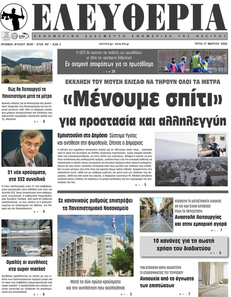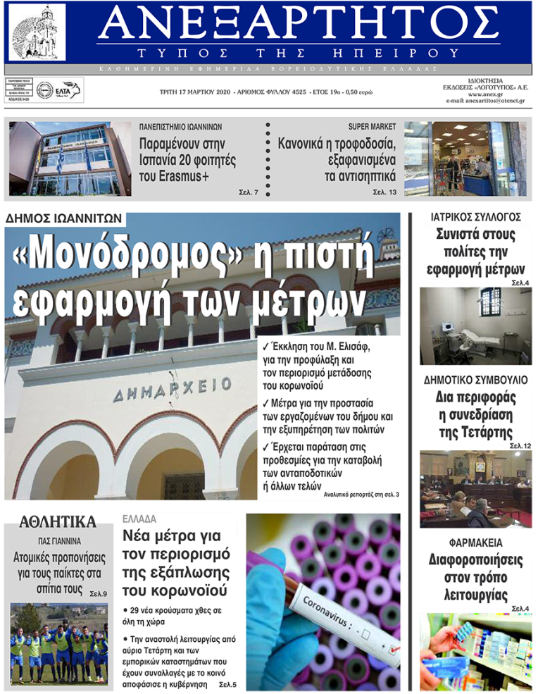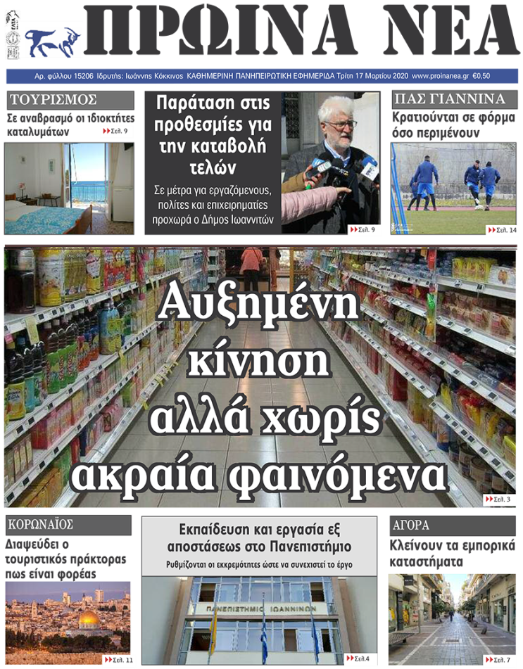 Διαβάστε σήμερα στα πρωτοσέλιδα των γιαννιώτικων εφημερίδων σήμερα, Τρίτη 17 Μαρτίου.