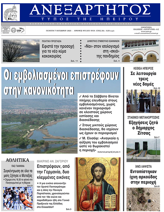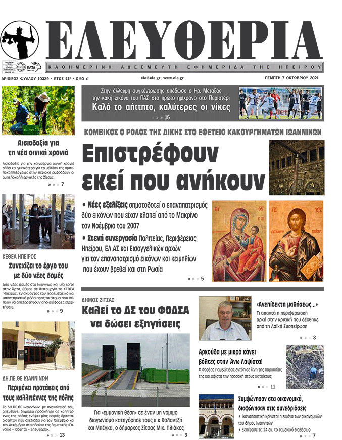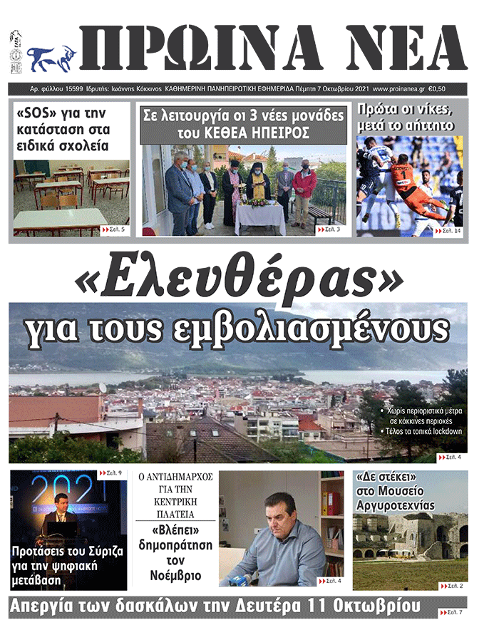 Διαβάστε στα πρωτοσέλιδα των γιαννιώτικων εφημερίδων της Πέμπτης 7 Οκτωβρίου