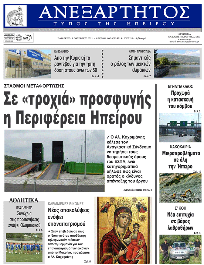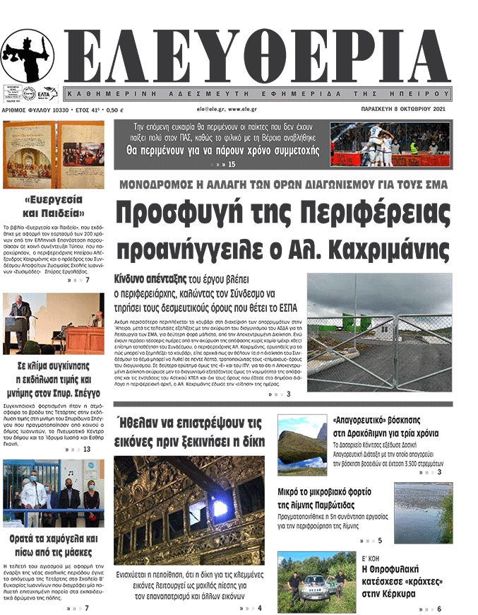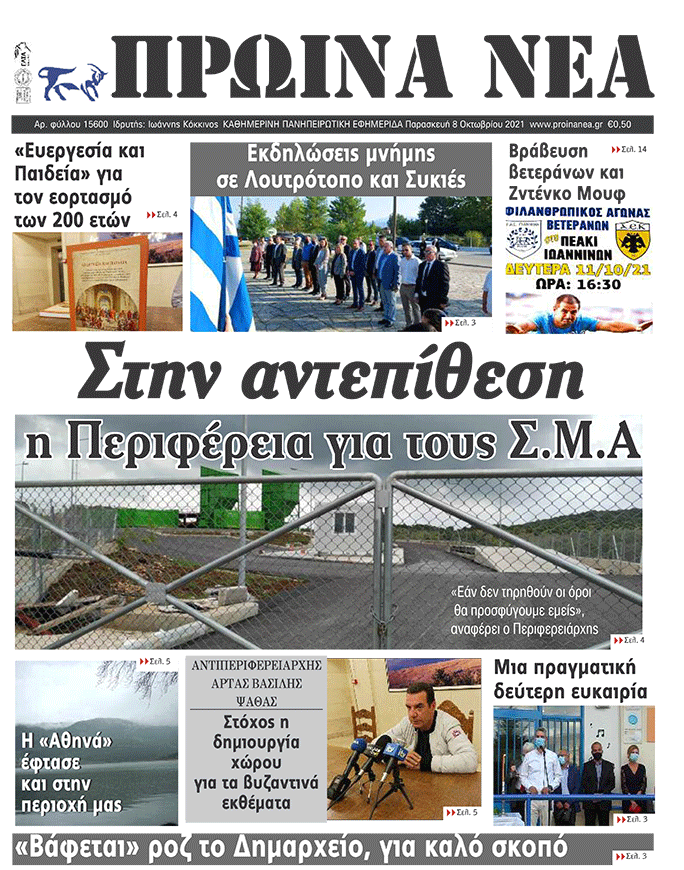 Διαβάστε στα πρωτοσέλιδα των γιαννιώτικων εφημερίδων της Παρασκευής 8 Οκτωβρίου