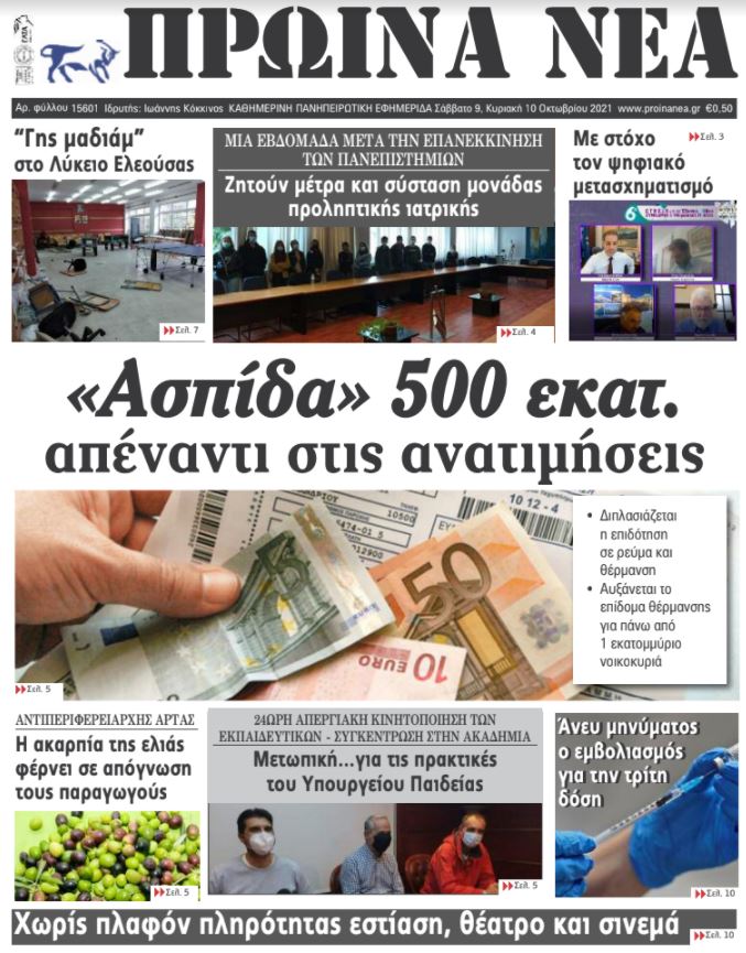 Διαβάστε στα πρωτοσέλιδα των γιαννιώτικων εφημερίδων του Σαββατοκύριακου 9-10 Οκτωβρίου
