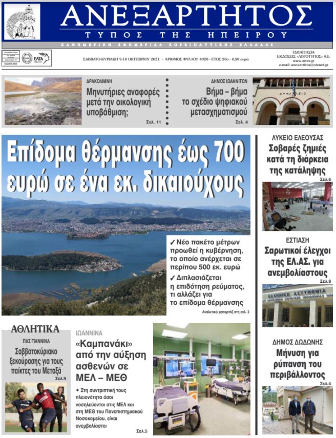 Διαβάστε στα πρωτοσέλιδα των γιαννιώτικων εφημερίδων του Σαββατοκύριακου 9-10 Οκτωβρίου