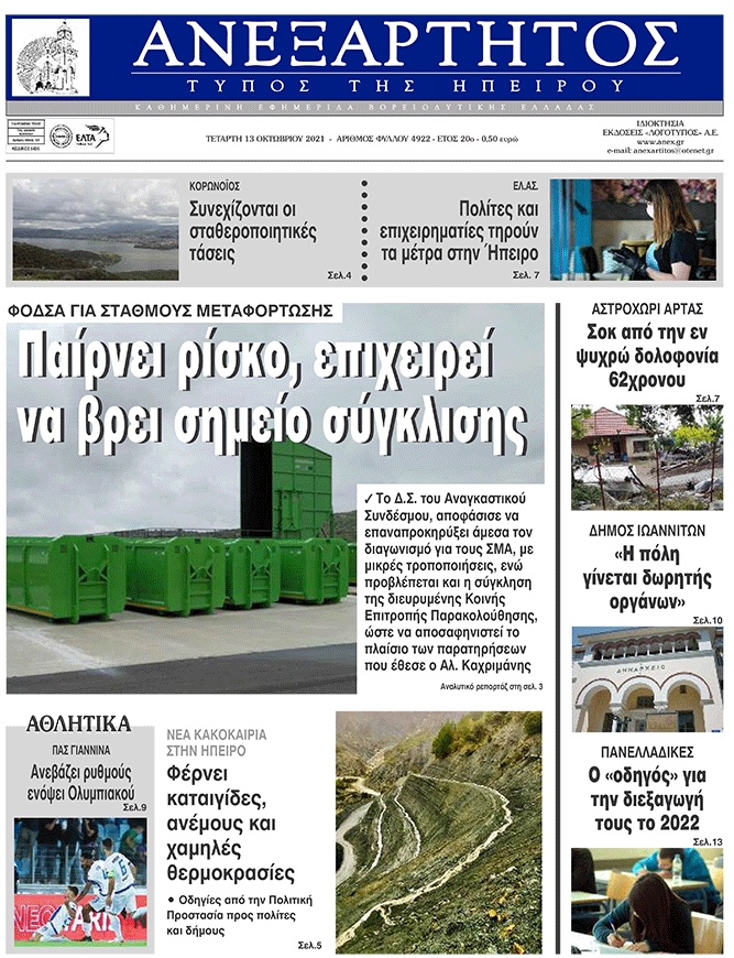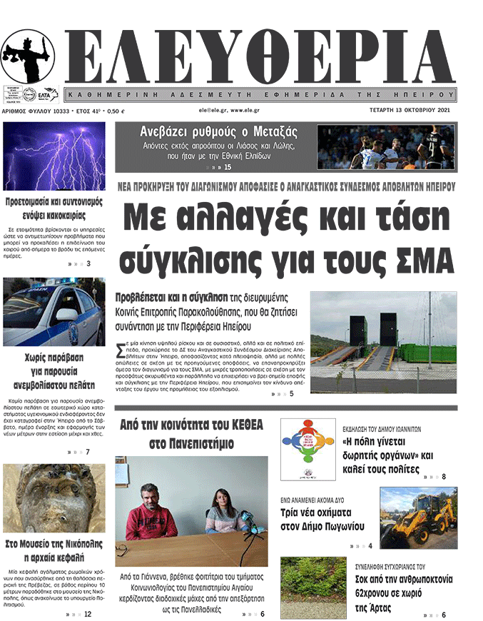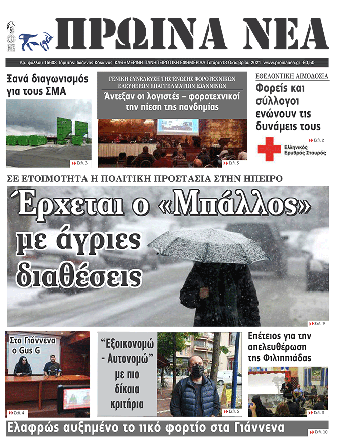 Διαβάστε στα πρωτοσέλιδα των γιαννιώτικων εφημερίδων της Τετάρτης 13 Οκτωβρίου