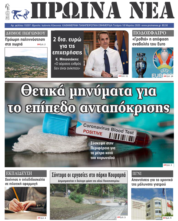 Διαβάστε σήμερα στα πρωτοσέλιδα των γιαννιώτικων εφημερίδων σήμερα, Τετάρτη 18 Μαρτίου.