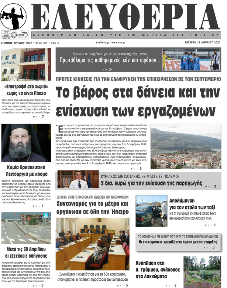 Διαβάστε σήμερα στα πρωτοσέλιδα των γιαννιώτικων εφημερίδων σήμερα, Τετάρτη 18 Μαρτίου.