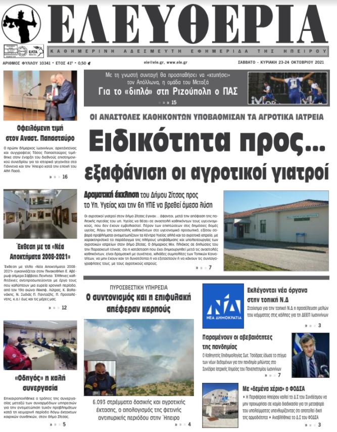 ΑρχικήTOP STORIES TOP STORIESΗΠΕΙΡΟΣ Τα πρωτοσέλιδα των γιαννιώτικων εφημερίδων 23.10.2021 147 FacebookTwitterWhatsAppEmailΤυπώνωViber Διαβάστε στα πρωτοσέλιδα των γιαννιώτικων εφημερίδων του Σαββατοκύριακου 23-24 Οκτωβρίου TagsΓΙΑΝΝΙΩΤΙΚΕΣ ΕΦΗΜΕΡΙΔΕΣΠΡΩΤΟΣΕΛΙΔΑ FacebookTwitterWhatsAppEmailΤυπώνωViber Προηγούμενο άρθροΣτις εσωκομματικές κάλπες η ΝΔΕπόμενο άρθροΤα του Καίσαρος… ΣΧΕΤΙΚΑ ΑΡΘΡΑ Τα πρωτοσέλιδα των γιαννιώτικων εφημερίδων TOP STORIES 29.11.2025 Τα πρωτοσέλιδα των γιαννιώτικων εφημερίδων ΗΠΕΙΡΟΣ 28.11.2025 Τα πρωτοσέλιδα των γιαννιώτικων εφημερίδων ΗΠΕΙΡΟΣ 27.11.2025 Τα πρωτοσέλιδα των γιαννιώτικων εφημερίδων ΗΠΕΙΡΟΣ 26.11.2025 Τα πρωτοσέλιδα των γιαννιώτικων εφημερίδων ΗΠΕΙΡΟΣ 25.11.2025 Τα πρωτοσέλιδα των γιαννιώτικων εφημερίδων ΗΠΕΙΡΟΣ 22.11.2025 ΣΤΗΝ ΙΔΙΑ ΚΑΤΗΓΟΡΙΑ Βγαίνουν και στους δρόμους της Ηπείρου τα τρακτέρ ΗΠΕΙΡΟΣ 29.11.2025 Στο Προεδρικό Μέγαρο η ομάδα I-GEM Ioannina ΗΠΕΙΡΟΣ 29.11.2025 Σχέδιο για Παιδοψυχιατρική Κλινική στα Ιωάννινα ΗΠΕΙΡΟΣ 29.11.2025 Τα προβλήματα να γίνουν αφορμή για βελτίωση ΗΠΕΙΡΟΣ 29.11.2025 Μαζική διαμαρτυρία για την κεραία δίπλα στο σχολείο ΗΠΕΙΡΟΣ 29.11.2025 Κοινή ευθύνη η ανθεκτικότητα των πόλεων ΗΠΕΙΡΟΣ 29.11.2025 ΜΗ ΧΑΣΕΤΕ Στο Προεδρικό Μέγαρο η ομάδα I-GEM Ioannina Σχέδιο για Παιδοψυχιατρική Κλινική στα Ιωάννινα Τα προβλήματα να γίνουν αφορμή για βελτίωση Μαζική διαμαρτυρία για την κεραία δίπλα στο σχολείο Κοινή ευθύνη η ανθεκτικότητα των πόλεων ΔΗΜΟΦΙΛΗ Μαζική διαμαρτυρία για την κεραία δίπλα στο σχολείο Τα προβλήματα να γίνουν αφορμή για βελτίωση Βγαίνουν και στους δρόμους της Ηπείρου τα τρακτέρ Τα πρωτοσέλιδα των γιαννιώτικων εφημερίδων Η επιστροφή ενοικίου σε 10 +1 ερωτήσεις και απαντήσεις