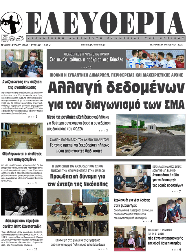 ΑρχικήΕΙΔΗΣΕΙΣΗΠΕΙΡΟΣ ΗΠΕΙΡΟΣ Tα πρωτοσέλιδα των γιαννιώτικων εφημερίδων 27.10.2021 70 FacebookTwitterWhatsAppEmailΤυπώνωViber Διαβάστε στα πρωτοσέλιδα των γιαννιώτικων εφημερίδων της Τετάρτης 27 Οκτωβρίου TagsΓΙΑΝΝΙΩΤΙΚΕΣ ΕΦΗΜΕΡΙΔΕΣΠΡΩΤΟΣΕΛΙΔΑ FacebookTwitterWhatsAppEmailΤυπώνωViber Προηγούμενο άρθροΑΠΟ ΤΗΝ ΠΕΡΙΦΕΡΕΙΑ ΗΠΕΙΡΟΥ-Βιβλία σε σχολεία σε Κορυτσά-ΧειμάρραΕπόμενο άρθροΠροωθητική δύναμη για την ένταξη της Νικόπολης ΣΧΕΤΙΚΑ ΑΡΘΡΑ Τα πρωτοσέλιδα των γιαννιώτικων εφημερίδων TOP STORIES 28.11.2025 Τα πρωτοσέλιδα των γιαννιώτικων εφημερίδων ΗΠΕΙΡΟΣ 27.11.2025 Τα πρωτοσέλιδα των γιαννιώτικων εφημερίδων ΗΠΕΙΡΟΣ 26.11.2025 Τα πρωτοσέλιδα των γιαννιώτικων εφημερίδων ΗΠΕΙΡΟΣ 25.11.2025 Τα πρωτοσέλιδα των γιαννιώτικων εφημερίδων ΗΠΕΙΡΟΣ 22.11.2025 Τα πρωτοσέλιδα των γιαννιώτικων εφημερίδων ΗΠΕΙΡΟΣ 21.11.2025 ΣΤΗΝ ΙΔΙΑ ΚΑΤΗΓΟΡΙΑ Διαγωνισμός για έργα ενεργειακής αναβάθμισης στο ΠΓΝΙ ΗΠΕΙΡΟΣ 28.11.2025 Εισροή νερού σε δύο χειρουργικές αίθουσες στο νοσοκομείο «Χατζηκώστα» ΗΠΕΙΡΟΣ 28.11.2025 Άρτα: Αλλοδαπός έκλεψε 850 ευρώ από ηλικιωμένο ΗΠΕΙΡΟΣ 28.11.2025 Κοινός τόπος η ανάγκη εξάλειψης της βίας κατά των γυναικών ΗΠΕΙΡΟΣ 28.11.2025 Νέες κατολισθήσεις στα Τζουμέρκα μετά την κακοκαιρία ΗΠΕΙΡΟΣ 28.11.2025 Εμφανίστηκε ξανά η εποχική λίμνη Βρέλλη ΗΠΕΙΡΟΣ 28.11.2025 ΜΗ ΧΑΣΕΤΕ Σήμερα η επιστροφή ενοικίου στους δικαιούχους Σήμερα η «Black Friday»: Τι πρέπει να προσέξετε στις αγορές σας Νέες κατολισθήσεις στα Τζουμέρκα μετά την κακοκαιρία Εμφανίστηκε ξανά η εποχική λίμνη Βρέλλη Επιδόματα και προσλήψεις στο συνέδριο δικαστικών υπαλλήλων ΔΗΜΟΦΙΛΗ Διαγωνισμός για έργα ενεργειακής αναβάθμισης στο ΠΓΝΙ Black Friday: Η «παγίδα» και οι ψυχολογικοί μηχανισμοί που οδηγούν στον υπερκαταναλωτισμό Τα του Καίσαρος… Για μία νέα αρχή και εκτός έδρας Άρτα: Αλλοδαπός έκλεψε 850 ευρώ από ηλικιωμένο