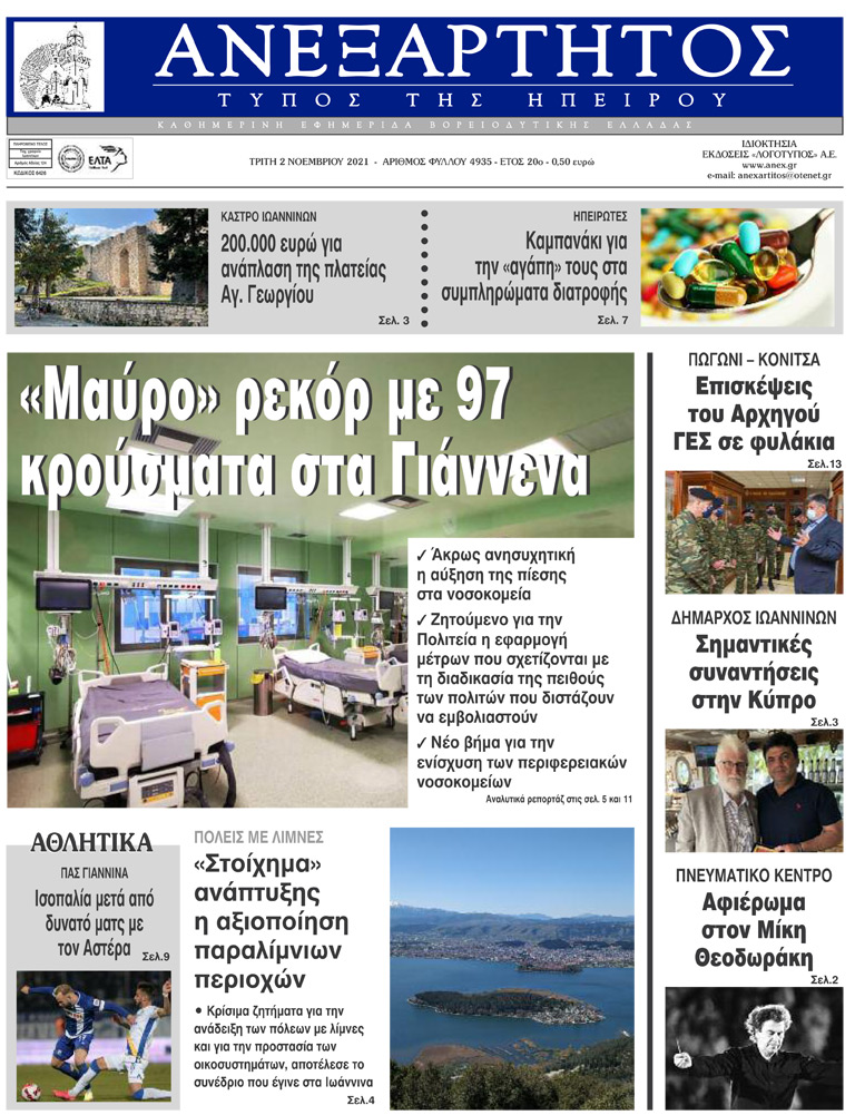 ΑρχικήTOP STORIES TOP STORIESΗΠΕΙΡΟΣ Τα πρωτοσέλιδα των γιαννιώτικων εφημερίδων 02.11.2021 87 FacebookTwitterWhatsAppEmailΤυπώνωViber Διαβάστε στα πρωτοσέλιδα των γιαννιώτικων εφημερίδων της Τρίτης 2 Νοεμβρίου TagsΓΙΑΝΝΙΩΤΙΚΕΣ ΕΦΗΜΕΡΙΔΕΣΠΡΩΤΟΣΕΛΙΔΑ FacebookTwitterWhatsAppEmailΤυπώνωViber Προηγούμενο άρθροΚουκλοθέατρο στο Φουαγιέ του Πνευματικού ΚέντρουΕπόμενο άρθροΆφησε πίσω του τις τρεις σερί ήττες ο ΠΑΣ ΣΧΕΤΙΚΑ ΑΡΘΡΑ Τα πρωτοσέλιδα των γιαννιώτικων εφημερίδων TOP STORIES 06.11.2025 Τα πρωτοσέλιδα των γιαννιώτικων εφημερίδων ΗΠΕΙΡΟΣ 05.11.2025 Τα πρωτοσέλιδα των γιαννιώτικων εφημερίδων ΗΠΕΙΡΟΣ 04.11.2025 Τα πρωτοσέλιδα των γιαννιώτικων εφημερίδων TOP STORIES 01.11.2025 Τα πρωτοσέλιδα των γιαννιώτικων εφημερίδων ΗΠΕΙΡΟΣ 31.10.2025 Τα πρωτοσέλιδα των γιαννιώτικων εφημερίδων ΗΠΕΙΡΟΣ 30.10.2025 ΣΤΗΝ ΙΔΙΑ ΚΑΤΗΓΟΡΙΑ Δύο ταυτοποιήσεις για κλοπές χρυσαφικών στην Άρτα ΗΠΕΙΡΟΣ 06.11.2025 Επιστροφή των εργαζομένων του «Γαλαξία» στις θέσεις τους ΗΠΕΙΡΟΣ 06.11.2025 Διαμαρτυρία των εργαζόμενων σε τουρισμό – επισιτισμό ΗΠΕΙΡΟΣ 06.11.2025 Καταγγελία της ΕΙΝΗ για τα «εντέλλεσθε» της 6ης ΥΠΕ ΗΠΕΙΡΟΣ 06.11.2025 Τα πρωτοσέλιδα των γιαννιώτικων εφημερίδων TOP STORIES 06.11.2025 «Άναψε πράσινο» για Σωφρονιστικό Κατάστημα στους Φιλιάτες ΗΠΕΙΡΟΣ 05.11.2025 ΜΗ ΧΑΣΕΤΕ Νέος Κώδικας Δήμων και ΔΕΥΑ στο συνέδριο της ΚΕΔΕ Υπεγράφη συμφωνία Energean, ExxonMobil και Helleniq Energy για γεώτρηση υδρογονανθράκων στο Ιόνιο Τα πρωτοσέλιδα των γιαννιώτικων εφημερίδων «Άναψε πράσινο» για Σωφρονιστικό Κατάστημα στους Φιλιάτες 206 πυρκαγιές με 61.000 καμένα στρέμματα στην Ήπειρο ΔΗΜΟΦΙΛΗ Συντάξεις Δεκεμβρίου: Πότε θα γίνει η πληρωμή τους – Αναλυτικά οι ημερομηνίες Υπεγράφη συμφωνία Energean, ExxonMobil και Helleniq Energy για γεώτρηση υδρογονανθράκων στο Ιόνιο Συνελήφθησαν δύο μαθητές Λυκείου για διακίνηση κοκαΐνης Βοσνία: Στους 12 οι νεκροί της πυρκαγιάς σε οίκο ευγηρίας Προσωπικός Αριθμός: Έληξε η προθεσμία – Τι ισχύει για όσους δεν έβγαλαν