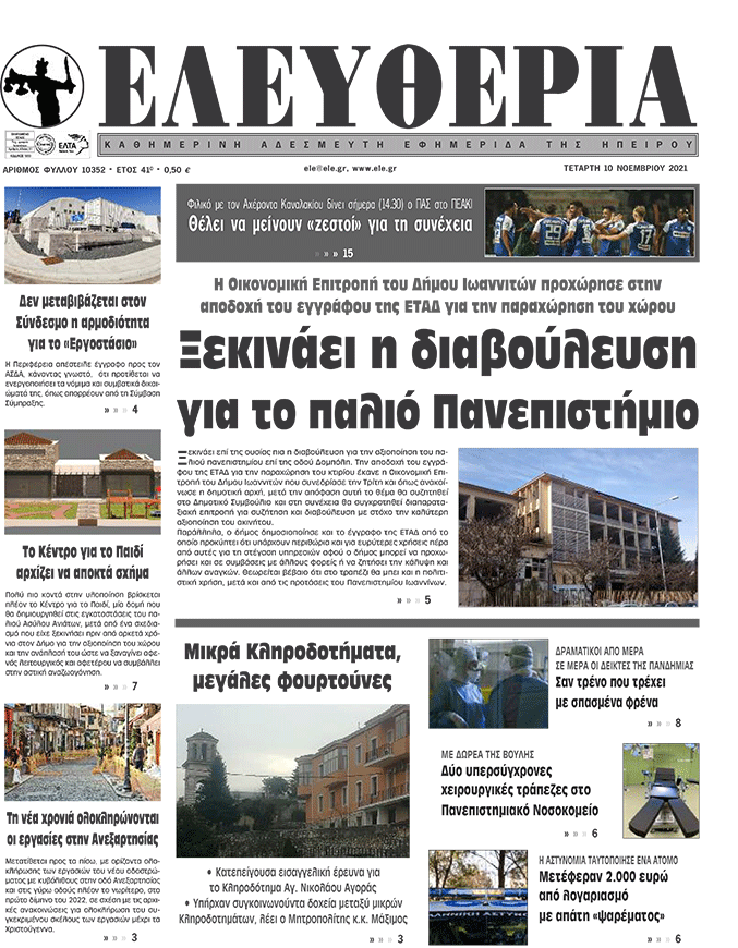 ΑρχικήTOP STORIES TOP STORIESΗΠΕΙΡΟΣ Τα πρωτοσέλιδα των γιαννιώτικων εφημερίδων 10.11.2021 92 FacebookTwitterWhatsAppEmailΤυπώνωViber Διαβάστε στα πρωτοσέλιδα των γιαννιώτικων εφημερίδων της Τετάρτης 10 Νοεμβρίου TagsΓΙΑΝΝΙΩΤΙΚΕΣ ΕΦΗΜΕΡΙΔΕΣΠΡΩΤΟΣΕΛΙΔΑ FacebookTwitterWhatsAppEmailΤυπώνωViber Προηγούμενο άρθροΔύσκολη η κατάσταση στα ΓιάννεναΕπόμενο άρθροΜικρά Κληροδοτήματα, μεγάλες φουρτούνες ΣΧΕΤΙΚΑ ΑΡΘΡΑ Τα πρωτοσέλιδα των γιαννιώτικων εφημερίδων TOP STORIES 28.11.2025 Τα πρωτοσέλιδα των γιαννιώτικων εφημερίδων ΗΠΕΙΡΟΣ 27.11.2025 Τα πρωτοσέλιδα των γιαννιώτικων εφημερίδων ΗΠΕΙΡΟΣ 26.11.2025 Τα πρωτοσέλιδα των γιαννιώτικων εφημερίδων ΗΠΕΙΡΟΣ 25.11.2025 Τα πρωτοσέλιδα των γιαννιώτικων εφημερίδων ΗΠΕΙΡΟΣ 22.11.2025 Τα πρωτοσέλιδα των γιαννιώτικων εφημερίδων ΗΠΕΙΡΟΣ 21.11.2025 ΣΤΗΝ ΙΔΙΑ ΚΑΤΗΓΟΡΙΑ Σήμερα η «Black Friday»: Τι πρέπει να προσέξετε στις αγορές σας TOP STORIES 28.11.2025 Κοινός τόπος η ανάγκη εξάλειψης της βίας κατά των γυναικών ΗΠΕΙΡΟΣ 28.11.2025 Νέες κατολισθήσεις στα Τζουμέρκα μετά την κακοκαιρία ΗΠΕΙΡΟΣ 28.11.2025 Εμφανίστηκε ξανά η εποχική λίμνη Βρέλλη ΗΠΕΙΡΟΣ 28.11.2025 Επιδόματα και προσλήψεις στο συνέδριο δικαστικών υπαλλήλων ΗΠΕΙΡΟΣ 28.11.2025 Ένταση και καταγγελίες στο Επιμελητήριο Ιωαννίνων ΗΠΕΙΡΟΣ 28.11.2025 ΜΗ ΧΑΣΕΤΕ Σήμερα η επιστροφή ενοικίου στους δικαιούχους Σήμερα η «Black Friday»: Τι πρέπει να προσέξετε στις αγορές σας Νέες κατολισθήσεις στα Τζουμέρκα μετά την κακοκαιρία Εμφανίστηκε ξανά η εποχική λίμνη Βρέλλη Επιδόματα και προσλήψεις στο συνέδριο δικαστικών υπαλλήλων ΔΗΜΟΦΙΛΗ Επιδόματα και προσλήψεις στο συνέδριο δικαστικών υπαλλήλων Thanksgiving: Η ιστορία και οι παραδόσεις πίσω από την Ημέρα των Ευχαριστιών Τα του Καίσαρος… Εμφανίστηκε ξανά η εποχική λίμνη Βρέλλη Κοινός τόπος η ανάγκη εξάλειψης της βίας κατά των γυναικών