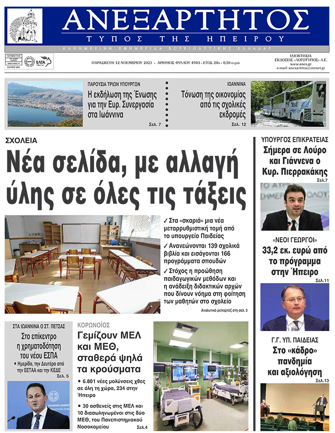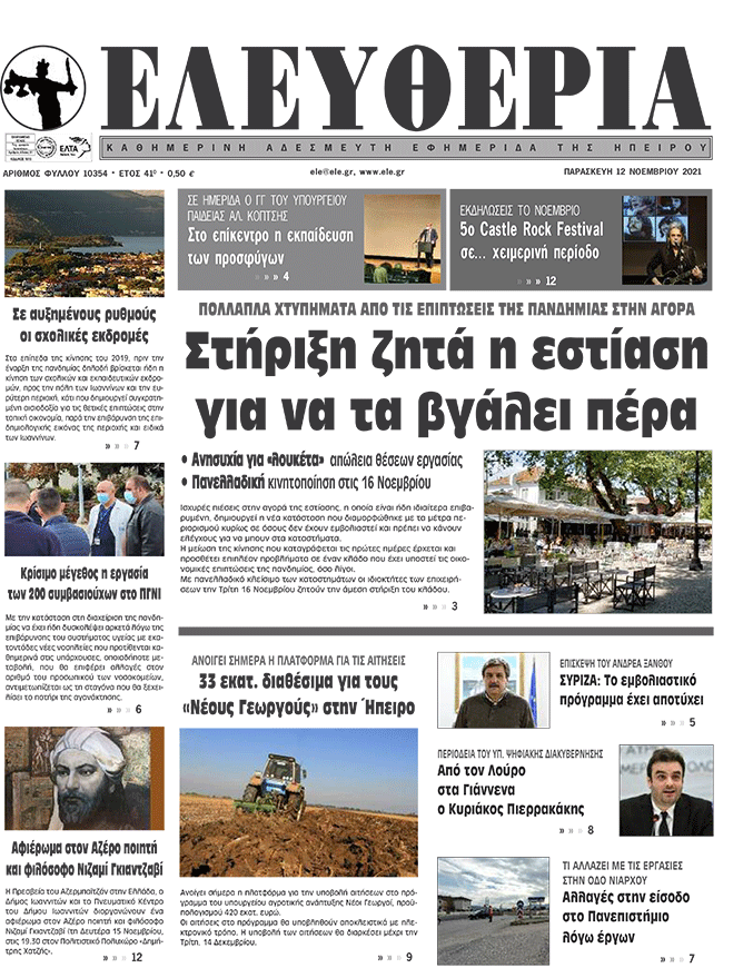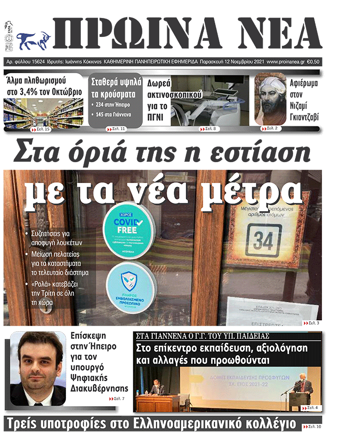 Διαβάστε στα πρωτοσέλιδα των γιαννιώτικων εφημερίδων της Παρασκευής 12 Νοεμβρίου