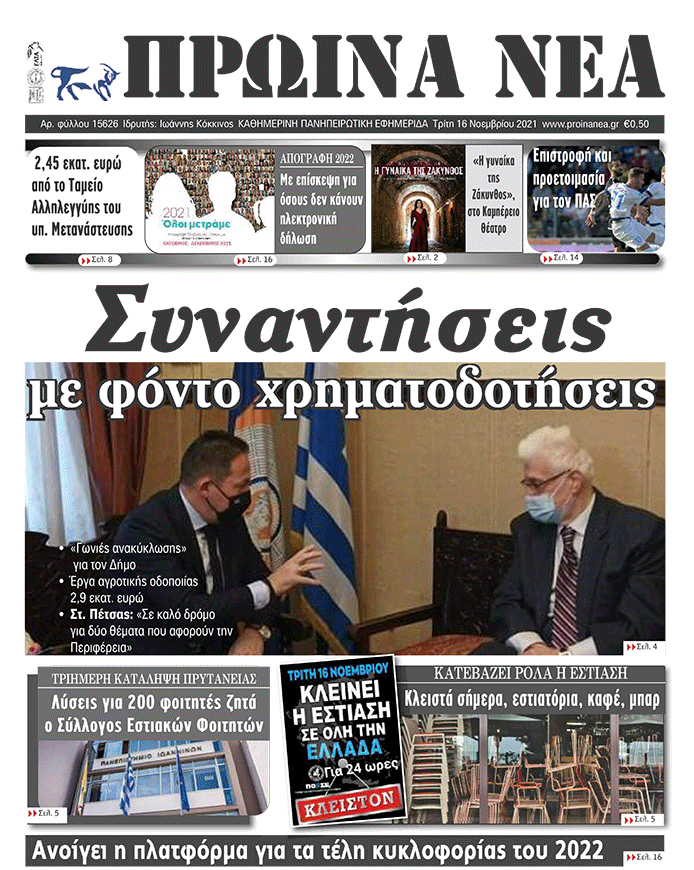 Διαβάστε στα πρωτοσέλιδα των γιαννιώτικων εφημερίδων της Τρίτης 16 Νοεμβρίου