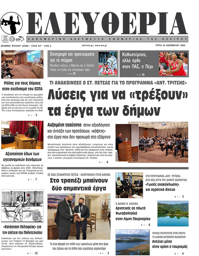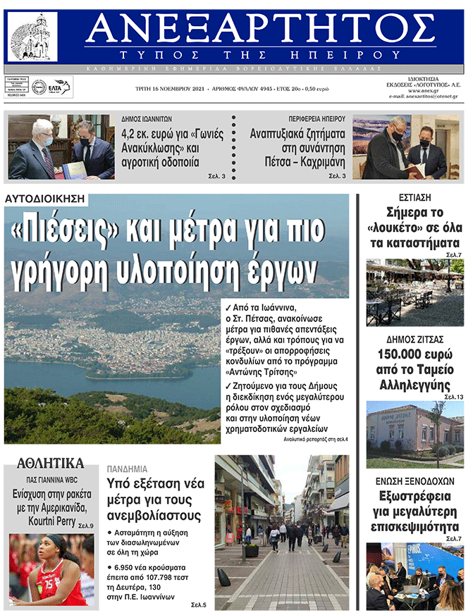 Διαβάστε στα πρωτοσέλιδα των γιαννιώτικων εφημερίδων της Τρίτης 16 Νοεμβρίου