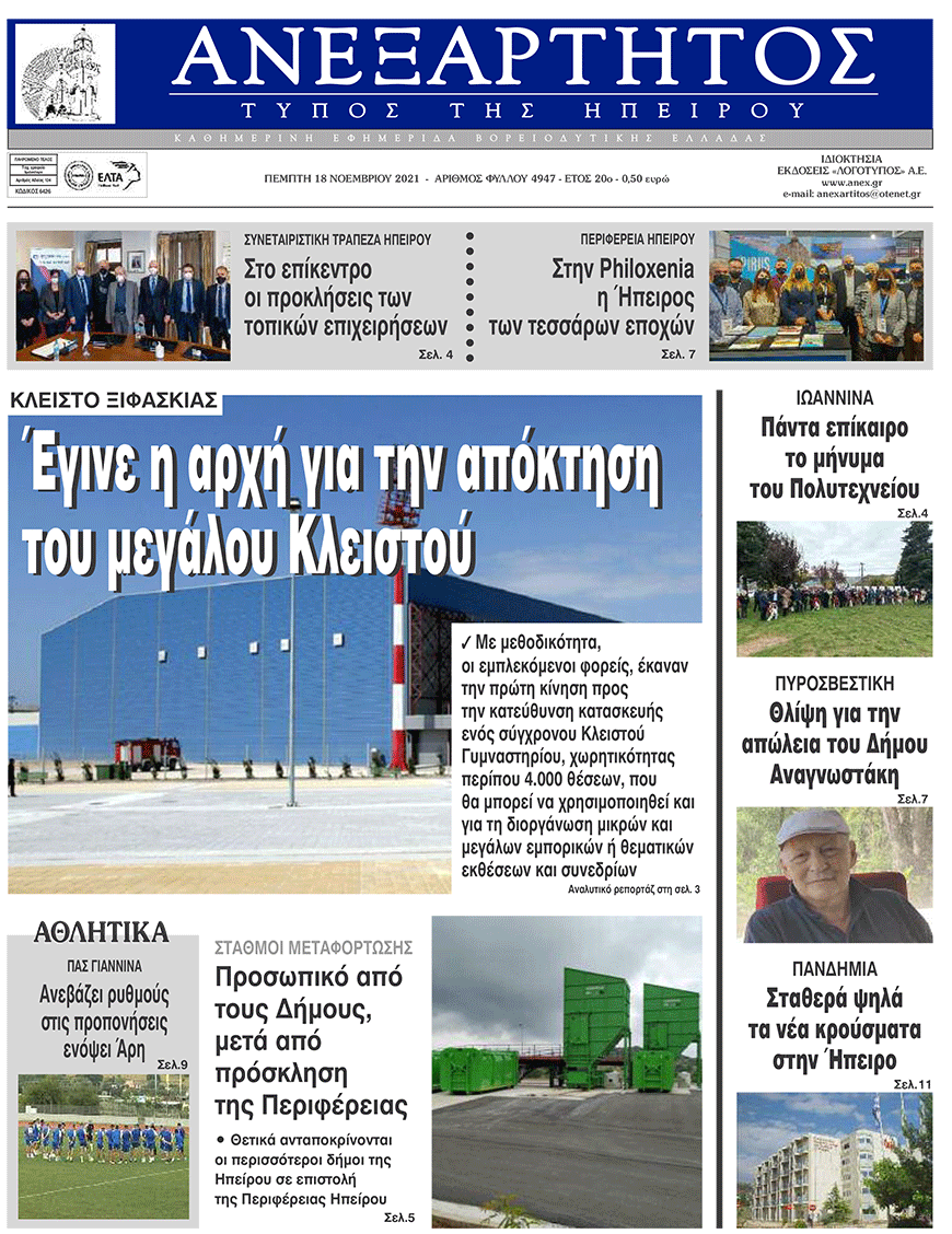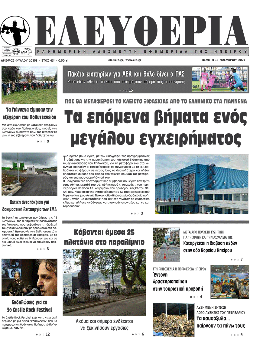 ΑρχικήTOP STORIES TOP STORIESΗΠΕΙΡΟΣ Τα πρωτοσέλιδα των γιαννιώτικων εφημερίδων 18.11.2021 60 FacebookTwitterWhatsAppEmailΤυπώνωViber Διαβάστε στα πρωτοσέλιδα των γιαννιώτικων εφημερίδων της Πέμπτης 18 Νοεμβρίου TagsΓΙΑΝΝΙΩΤΙΚΕΣ ΕΦΗΜΕΡΙΔΕΣΠΡΩΤΟΣΕΛΙΔΑ FacebookTwitterWhatsAppEmailΤυπώνωViber Προηγούμενο άρθροΣΥΝΕΤΑΙΡΙΣΤΙΚΗ ΤΡΑΠΕΖΑ ΗΠΕΙΡΟΥ-Στο επίκεντρο οι προκλήσεις των τοπικών επιχειρήσεωνΕπόμενο άρθροΚαταργείται η διάβαση πεζών στην οδό Βορείου Ηπείρου ΣΧΕΤΙΚΑ ΑΡΘΡΑ Τα πρωτοσέλιδα των γιαννιώτικων εφημερίδων TOP STORIES 31.12.2025 Τα πρωτοσέλιδα των γιαννιώτικων εφημερίδων ΗΠΕΙΡΟΣ 30.12.2025 Τα πρωτοσέλιδα των γιαννιώτικων εφημερίδων ΗΠΕΙΡΟΣ 24.12.2025 Τα πρωτοσέλιδα των γιαννιώτικων εφημερίδων ΗΠΕΙΡΟΣ 23.12.2025 Τα πρωτοσέλιδα των γιαννιώτικων εφημερίδων ΗΠΕΙΡΟΣ 19.12.2025 Τα πρωτοσέλιδα των γιαννιώτικων εφημερίδων ΗΠΕΙΡΟΣ 18.12.2025 ΣΤΗΝ ΙΔΙΑ ΚΑΤΗΓΟΡΙΑ Παράταση αγωνίας για τους αντιδημάρχους ΗΠΕΙΡΟΣ 31.12.2025 Πρωτοχρονιάτικα κάλαντα στο Δημαρχείο Ιωαννίνων ΗΠΕΙΡΟΣ 31.12.2025 Τα κάλαντα της Πρωτοχρονιάς στην Περιφέρεια Ηπείρου ΗΠΕΙΡΟΣ 31.12.2025 Νέες διαδρομές περιήγησης στον αρχαιολογικό χώρο της Νικόπολης ΗΠΕΙΡΟΣ 31.12.2025 Η παιδική χορωδία του Δήμου Ζίτσας έψαλλε τα πρωτοχρονιάτικα κάλαντα ΗΠΕΙΡΟΣ 31.12.2025 ΕΑΥΙ: Απαραίτητη η ενίσχυση της προστασίας των αστυνομικών για την αποτροπή τραγωδιών ΗΠΕΙΡΟΣ 31.12.2025 ΜΗ ΧΑΣΕΤΕ Παράταση αγωνίας για τους αντιδημάρχους Νέες διαδρομές περιήγησης στον αρχαιολογικό χώρο της Νικόπολης Εγνατία Οδός: Αυξάνονται τα διόδια, καταργείται το EgnatiaPass Αυξήσεις στα διόδια από 1η Ιανουαρίου 2026 Σε αυξημένα επίπεδα η γρίπη τύπου Α ΔΗΜΟΦΙΛΗ Διάλογος για αλλαγές στην Παιδεία το 2026 Ο ΟΠΕΚΕΠΕ ενσωματώνεται στην ΑΑΔΕ από 1η Ιανουαρίου 2026 Οι ευρωπαϊκές αγορές κλείνουν το 2025 σε υψηλά επίπεδα Δωρεάν διέλευση από τα διόδια της Εγνατίας Οδού σήμερα Σταθερές τιμές στα οικιακά τιμολόγια της ΔΕΗ για τον Ιανουάριο 2026