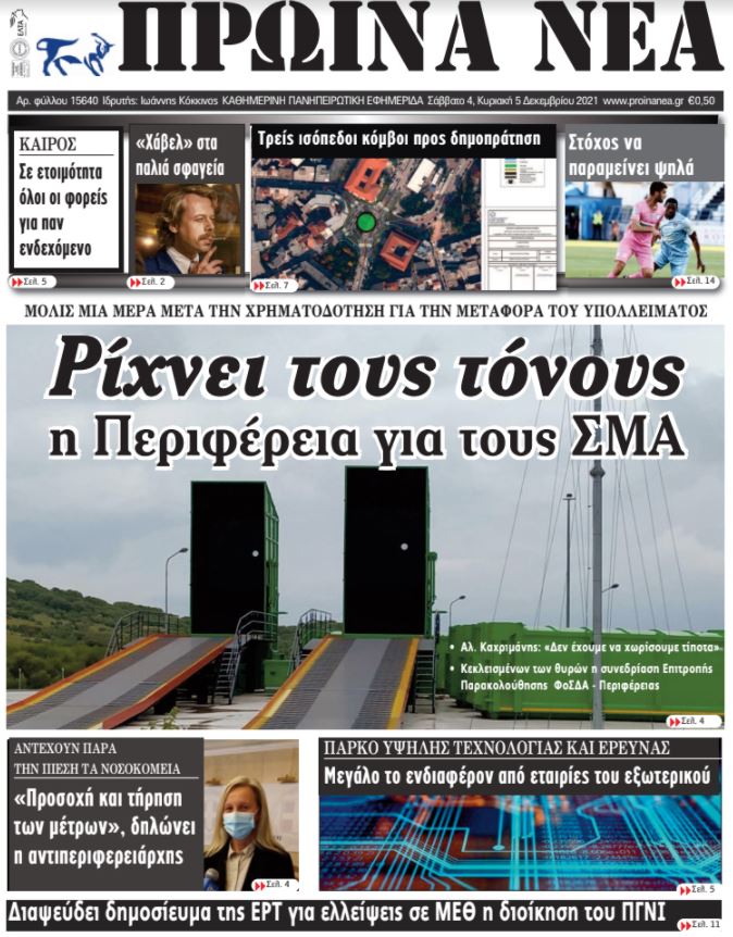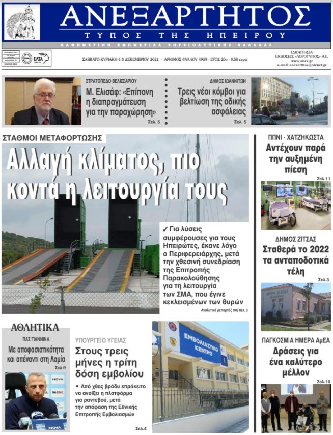 Διαβάστε στα πρωτοσέλιδα των γιαννιώτικων εφημερίδων του Σαββατοκύριακου 4-5 Δεκεμβρίου