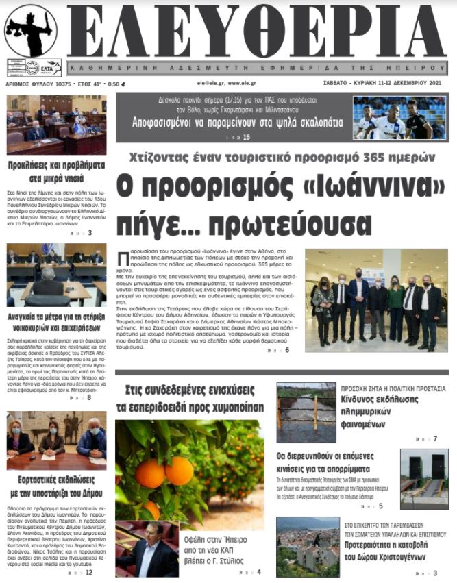 ΑρχικήΕΙΔΗΣΕΙΣΗΠΕΙΡΟΣ ΗΠΕΙΡΟΣ Τα πρωτοσέλιδα των γιαννιώτικων εφημερίδων 11.12.2021 112 FacebookTwitterWhatsAppEmailΤυπώνωViber Διαβάστε στα πρωτοσέλιδα των γιαννιώτικων εφημερίδων του Σαββατοκύριακου 11-12 Δεκεμβρίου TagsΓΙΑΝΝΙΩΤΙΚΕΣ ΕΦΗΜΕΡΙΔΕΣΠΡΩΤΟΣΕΛΙΔΑ FacebookTwitterWhatsAppEmailΤυπώνωViber Προηγούμενο άρθροΘετική στον covid-19 έφερε στον κόσμο υγιέστατα δίδυμαΕπόμενο άρθροΔιακοπή κυκλοφορίας στο Καναλλάκι- Υπερχείλισε ο Αχέροντας ΣΧΕΤΙΚΑ ΑΡΘΡΑ Τα πρωτοσέλιδα των γιαννιώτικων εφημερίδων TOP STORIES 27.11.2025 Τα πρωτοσέλιδα των γιαννιώτικων εφημερίδων ΗΠΕΙΡΟΣ 26.11.2025 Τα πρωτοσέλιδα των γιαννιώτικων εφημερίδων ΗΠΕΙΡΟΣ 25.11.2025 Τα πρωτοσέλιδα των γιαννιώτικων εφημερίδων ΗΠΕΙΡΟΣ 22.11.2025 Τα πρωτοσέλιδα των γιαννιώτικων εφημερίδων ΗΠΕΙΡΟΣ 21.11.2025 Τα πρωτοσέλιδα των γιαννιώτικων εφημερίδων TOP STORIES 20.11.2025 ΣΤΗΝ ΙΔΙΑ ΚΑΤΗΓΟΡΙΑ Κατολίσθηση στην Άγναντα – Ανήσυχοι οι κάτοικοι ΗΠΕΙΡΟΣ 27.11.2025 Σε ετοιμότητα Περιφέρεια και δήμοι για το νέο κύμα κακοκαιρίας ΗΠΕΙΡΟΣ 27.11.2025 Κατηγορίες κατά του Δήμου για αδιαφορία μετά την πτώση δέντρου ΗΠΕΙΡΟΣ 27.11.2025 Σε τροχιά ενεργειακής αυτονομίας ο Δήμος Ζίτσας ΗΠΕΙΡΟΣ 27.11.2025 Τα πρωτοσέλιδα των γιαννιώτικων εφημερίδων TOP STORIES 27.11.2025 Στάση ευθύνης ζητά από την αντιπολίτευση ο δήμαρχος Βορείων Τζουμέρκων ΗΠΕΙΡΟΣ 26.11.2025 ΜΗ ΧΑΣΕΤΕ Σε ετοιμότητα Περιφέρεια και δήμοι για το νέο κύμα κακοκαιρίας Κατηγορίες κατά του Δήμου για αδιαφορία μετά την πτώση δέντρου Σε τροχιά ενεργειακής αυτονομίας ο Δήμος Ζίτσας Τα πρωτοσέλιδα των γιαννιώτικων εφημερίδων Προσοχή, συνεργασία και ψυχραιμία για το νέο κύμα κακοκαιρίας ΔΗΜΟΦΙΛΗ Ψυχολογικό και τακτικό ντοπάρισμα στον ΠΑΣ ενόψει ΠΑΟΚ Β’ Σε τροχιά ενεργειακής αυτονομίας ο Δήμος Ζίτσας Σε ετοιμότητα Περιφέρεια και δήμοι για το νέο κύμα κακοκαιρίας Τα του Καίσαρος… Νέα έκτακτη στήριξη στους κτηνοτρόφους – Πώς θα πληρωθούν οι αποζημιώσεις