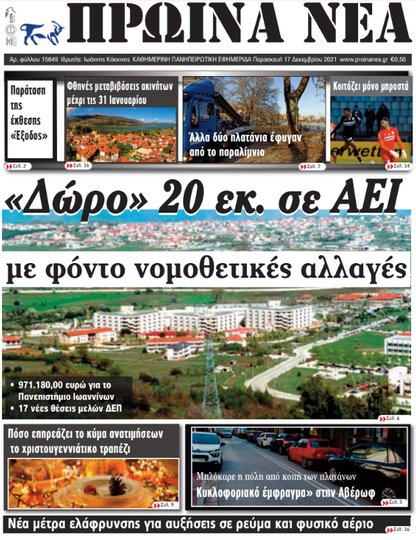 Διαβάστε στα πρωτοσέλιδα των γιαννιώτικων εφημερίδων της Παρασκευής 17 Δεκεμβρίου