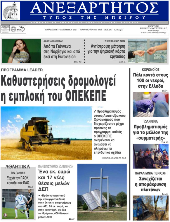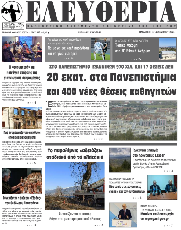 Διαβάστε στα πρωτοσέλιδα των γιαννιώτικων εφημερίδων της Παρασκευής 17 Δεκεμβρίου