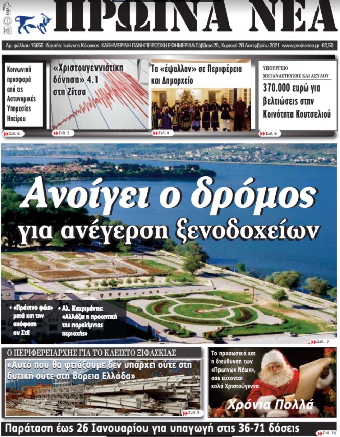 Διαβάστε στα πρωτοσέλιδα των γιαννιώτικων εφημερίδων του τριημέρου 25-27 Δεκεμβρίου