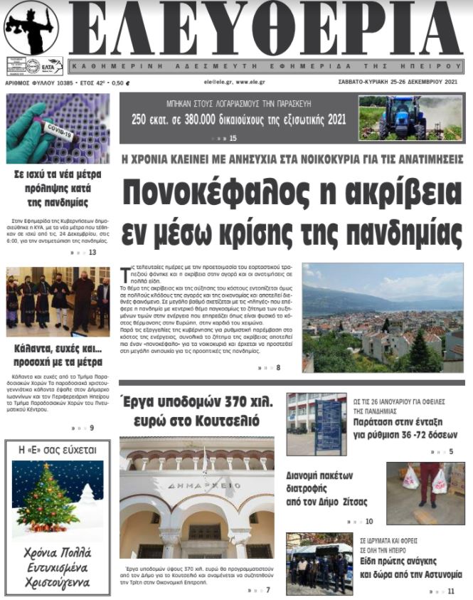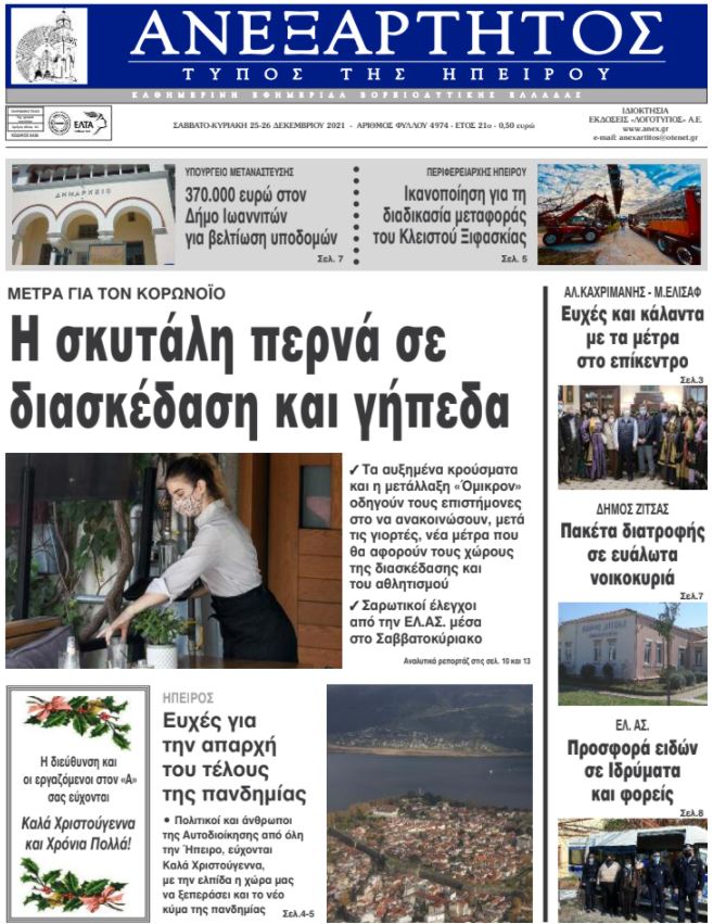 Διαβάστε στα πρωτοσέλιδα των γιαννιώτικων εφημερίδων του τριημέρου 25-27 Δεκεμβρίου