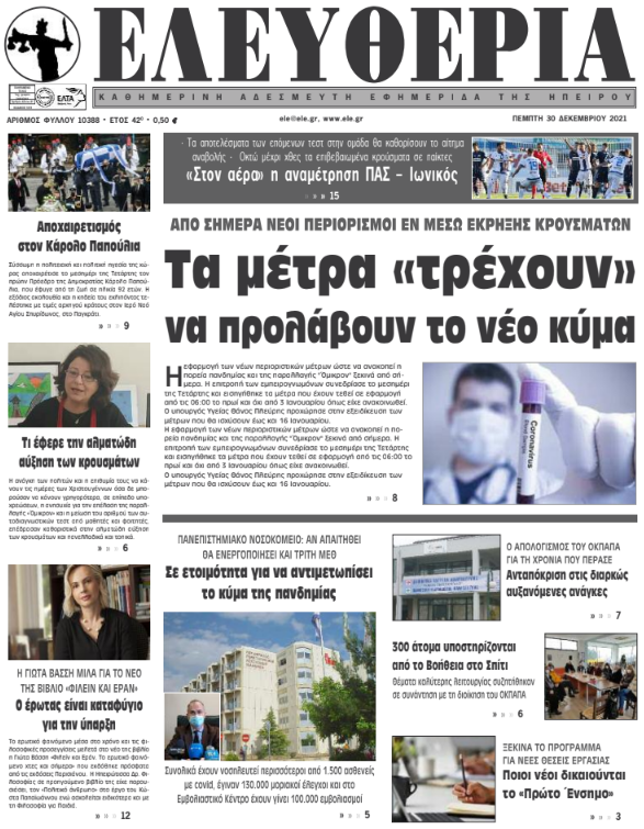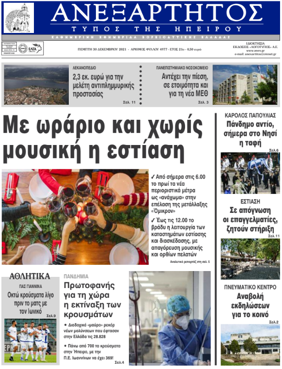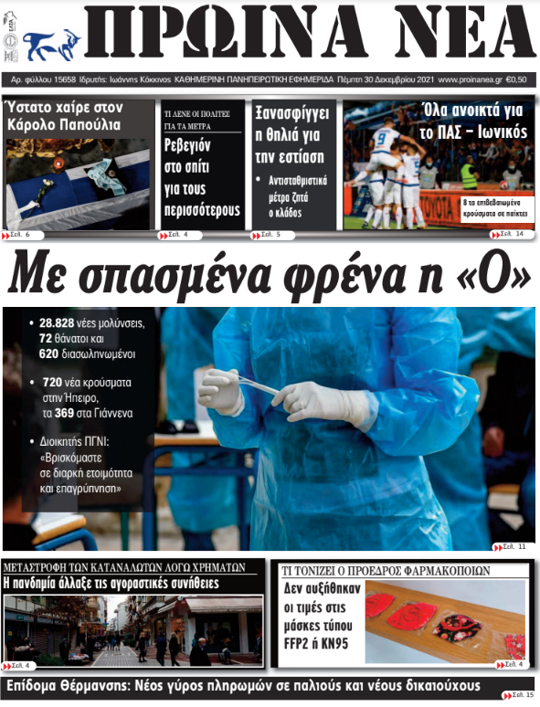 Διαβάστε στα πρωτοσέλιδα των γιαννιώτικων εφημερίδων της Πέμπτης 30 Δεκεμβρίου