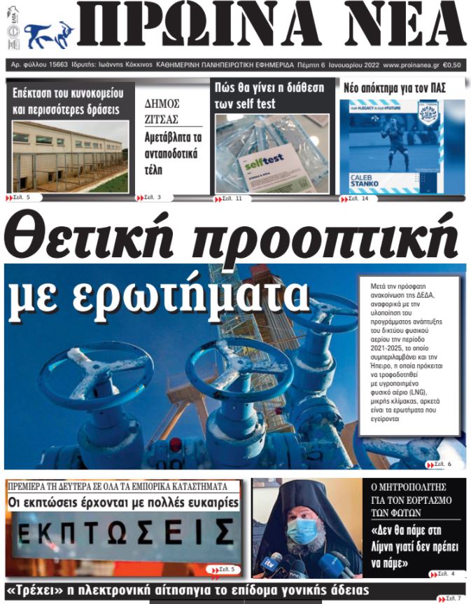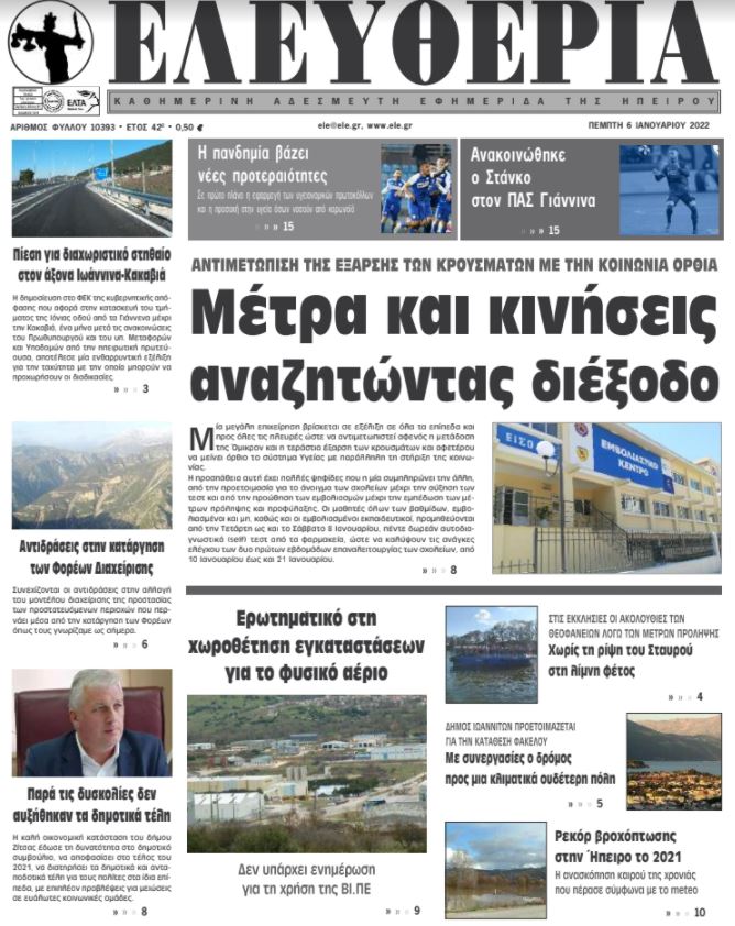 ΑρχικήTOP STORIES TOP STORIESΗΠΕΙΡΟΣ Τα πρωτοσέλιδα των γιαννιώτικων εφημερίδων 06.01.2022 124 FacebookTwitterWhatsAppEmailΤυπώνωViber Διαβάστε στα πρωτοσέλιδα των γιαννιώτικων εφημερίδων την Πέμπτη 6 Ιανουαρίου TagsΓΙΑΝΝΙΩΤΙΚΕΣ ΕΦΗΜΕΡΙΔΕΣΠΡΩΤΟΣΕΛΙΔΑ FacebookTwitterWhatsAppEmailΤυπώνωViber Προηγούμενο άρθροΣτη σκιά της Όμικρον ο αγιασμός των υδάτωνΕπόμενο άρθροΠίεση για διαχωριστικό στηθαίο στον άξονα Ιωάννινα-Κακαβιά ΣΧΕΤΙΚΑ ΑΡΘΡΑ Τα πρωτοσέλιδα των γιαννιώτικων εφημερίδων TOP STORIES 01.11.2025 Τα πρωτοσέλιδα των γιαννιώτικων εφημερίδων ΗΠΕΙΡΟΣ 31.10.2025 Τα πρωτοσέλιδα των γιαννιώτικων εφημερίδων ΗΠΕΙΡΟΣ 30.10.2025 Τα πρωτοσέλιδα των γιαννιώτικων εφημερίδων ΗΠΕΙΡΟΣ 28.10.2025 Τα πρωτοσέλιδα των γιαννιώτικων εφημερίδων ΗΠΕΙΡΟΣ 25.10.2025 Τα πρωτοσέλιδα των γιαννιώτικων εφημερίδων ΗΠΕΙΡΟΣ 24.10.2025 ΣΤΗΝ ΙΔΙΑ ΚΑΤΗΓΟΡΙΑ Χρυσό μετάλλιο για την ομάδα iGEM Ioannina 2025 στο Παρίσι – Καινοτόμο έργο για τη διάσωση του ελληνικού πλατάνου ΗΠΕΙΡΟΣ 02.11.2025 Λαμπρός εορτασμός για την επέτειο απελευθέρωσης του Μετσόβου ΗΠΕΙΡΟΣ 02.11.2025 Εργασίες σε τμήμα της Ιόνιας Οδού φέρνουν ρυθμίσεις ΗΠΕΙΡΟΣ 02.11.2025 ΕΛΤΑ: Τρίμηνη παράταση για τα καταστήματα της περιφέρειας TOP STORIES 01.11.2025 Δεν ήταν τελικά και τόσο απαιτητική κατασκευή… ΗΠΕΙΡΟΣ 01.11.2025 Χριστούγεννα στην πλατεία, που θα ολοκληρωθεί(;) τον Ιούλιο ΗΠΕΙΡΟΣ 01.11.2025 ΜΗ ΧΑΣΕΤΕ Χρυσό μετάλλιο για την ομάδα iGEM Ioannina 2025 στο Παρίσι – Καινοτόμο έργο για τη διάσωση του ελληνικού πλατάνου Λαμπρός εορτασμός για την επέτειο απελευθέρωσης του Μετσόβου ΕΛΤΑ: Τρίμηνη παράταση για τα καταστήματα της περιφέρειας Χριστούγεννα στην πλατεία, που θα ολοκληρωθεί(;) τον Ιούλιο «Δικαίωση» αλλά οι σκιές έμειναν… ΔΗΜΟΦΙΛΗ Σημαντική μείωση στις εκκρεμείς κύριες συντάξεις Εργασίες σε τμήμα της Ιόνιας Οδού φέρνουν ρυθμίσεις ΤΗ ΔΕΥΤΕΡΑ -Κλείνει προσωρινά η πλατφόρμα Α21 – Επίδομα Παιδιού ΟΙΚΟΔΟΜΟΤΕΧΝΙΚΑ ΕΡΓΑ -Προσωρινή μη διαθεσιμότητα της ηλεκτρονικής υποβολής Α.Π.Δ. Άτυχος ο ΠΑΣ Γιάννινα, έμεινε στο 0-0 με την Καβάλα παρά τα τρία δοκάρια