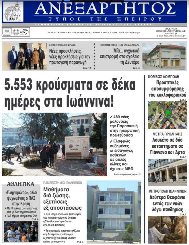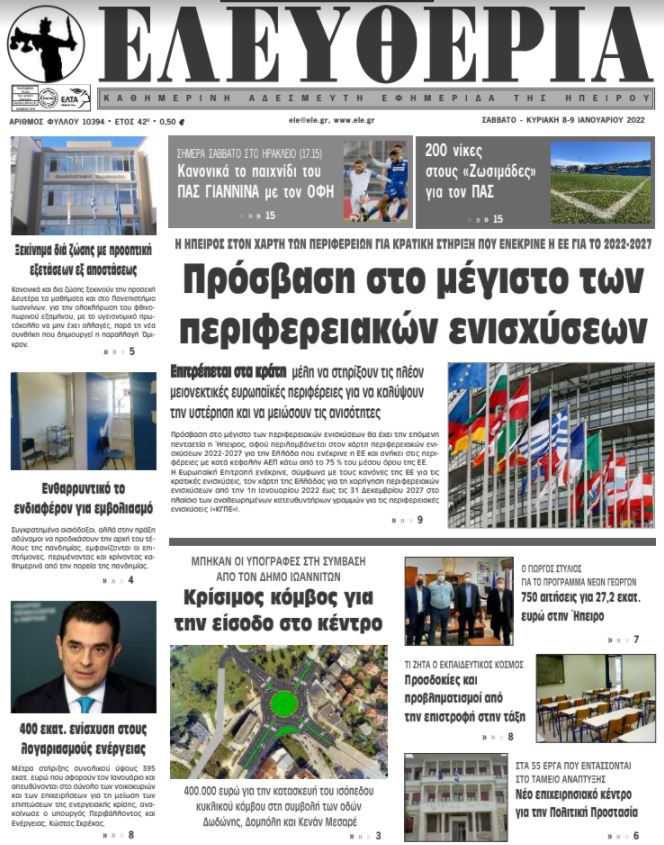 ΑρχικήTOP STORIES TOP STORIESΗΠΕΙΡΟΣ Τα πρωτοσέλιδα των γιαννιώτικων εφημερίδων 08.01.2022 104 FacebookTwitterWhatsAppEmailΤυπώνωViber Διαβάστε στα πρωτοσέλιδα των γιαννιώτικων εφημερίδων του τριημέρου 8-10 Ιανουαρίου TagsΓΙΑΝΝΙΩΤΙΚΕΣ ΕΦΗΜΕΡΙΔΕΣΠΡΩΤΟΣΕΛΙΔΑ FacebookTwitterWhatsAppEmailΤυπώνωViber Προηγούμενο άρθροΚανονικά το παιχνίδι του ΠΑΣ ΓΙΑΝΝΙΝΑ με τον ΟΦΗΕπόμενο άρθροΟι εκπτώσεις έρχονται με πολλές ευκαιρίες ΣΧΕΤΙΚΑ ΑΡΘΡΑ Τα πρωτοσέλιδα των γιαννιώτικων εφημερίδων ΗΠΕΙΡΟΣ 19.12.2025 Τα πρωτοσέλιδα των γιαννιώτικων εφημερίδων ΗΠΕΙΡΟΣ 18.12.2025 Τα πρωτοσέλιδα των γιαννιώτικων εφημερίδων ΗΠΕΙΡΟΣ 17.12.2025 Τα πρωτοσέλιδα των γιαννιώτικων εφημερίδων ΗΠΕΙΡΟΣ 16.12.2025 Τα πρωτοσέλιδα των γιαννιώτικων εφημερίδων ΗΠΕΙΡΟΣ 13.12.2025 Τα πρωτοσέλιδα των γιαννιώτικων εφημερίδων ΗΠΕΙΡΟΣ 12.12.2025 ΣΤΗΝ ΙΔΙΑ ΚΑΤΗΓΟΡΙΑ ΗΠΕΙΡΟΣ -Έργα αποκατάστασης με 29,7 εκατ. ευρώ ΗΠΕΙΡΟΣ 21.12.2025 Στάχτη έγινε κατοικία ηλικιωμένης στο Ανήλιο – Ζημιές και σε γειτονικό σπίτι ΗΠΕΙΡΟΣ 21.12.2025 Αναβίωσε στο Κάστρο το χριστουγεννιάτικο έθιμο «Τα σπάργανα του Χριστού» ΗΠΕΙΡΟΣ 20.12.2025 ΔΗΜΟΣ ΒΟΡΕΙΩΝ ΤΖΟΥΜΕΡΚΩΝ -Σε τροχιά ψηφιακού μετασχηματισμού ΗΠΕΙΡΟΣ 20.12.2025 Γ.Ν.Ι. «Γ.ΧΑΤΖΗΚΩΣΤΑ» -Αναβάθμιση με νέο υπερσύγχρονο αξονικό τομογράφο ΗΠΕΙΡΟΣ 20.12.2025 Ξεκάθαρο «ναι» στη δημιουργία νέου πολιτικού κόμματος από τη Μαρία Καρυστιανού ΗΠΕΙΡΟΣ 19.12.2025 ΜΗ ΧΑΣΕΤΕ Ξεκάθαρο «ναι» στη δημιουργία νέου πολιτικού κόμματος από τη Μαρία Καρυστιανού 1 εκ. ευρώ για παρεμβάσεις σε Ιωάννινα και Πέραμα Αναπροσαρμογή τελών καθαριότητας και φωτισμού στον Δήμο Ιωαννιτών Κριτική και ενστάσεις για το σχέδιο τουριστικής προβολής της Περιφέρειας Ηπείρου Χρήματα πριν τις γιορτές: Νωρίτερα συντάξεις, επιδόματα και Δώρο Χριστουγέννων ΔΗΜΟΦΙΛΗ ΗΠΕΙΡΟΣ -Έργα αποκατάστασης με 29,7 εκατ. ευρώ Στάχτη έγινε κατοικία ηλικιωμένης στο Ανήλιο – Ζημιές και σε γειτονικό σπίτι Ήχοι γιορτής στην πόλη των Ιωαννίνων ΒΟΥΛΗ – ΟΠΕΚΕΠΕ -«Πέρασε» με 159 «ναι» η ένταξη στην ΑΑΔΕ Εθελοντική αιμοδοσία από το 8ο ΓΕΛ