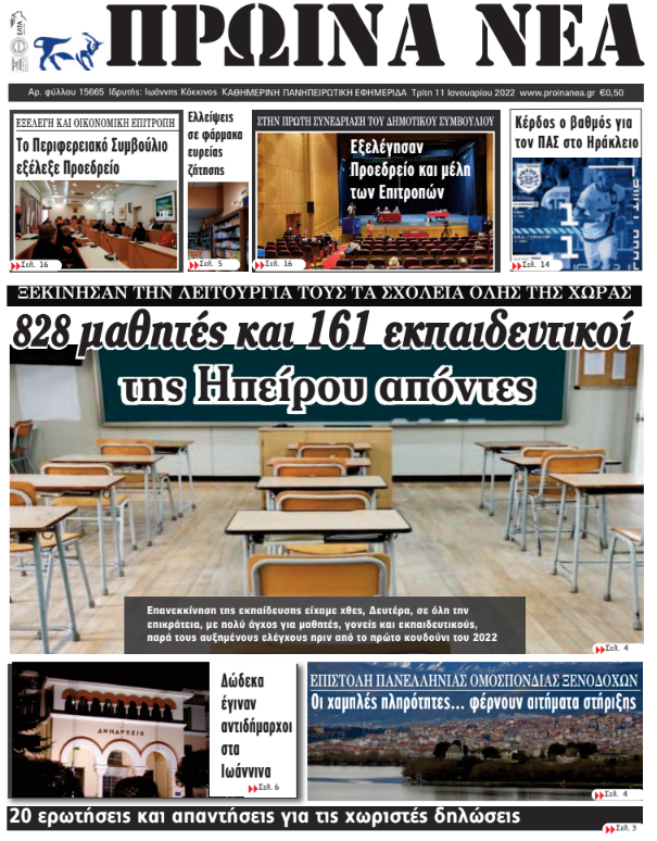 Διαβάστε στα πρωτοσέλιδα των γιαννιώτικων εφημερίδων της Τρίτης 11 Ιανουαρίου