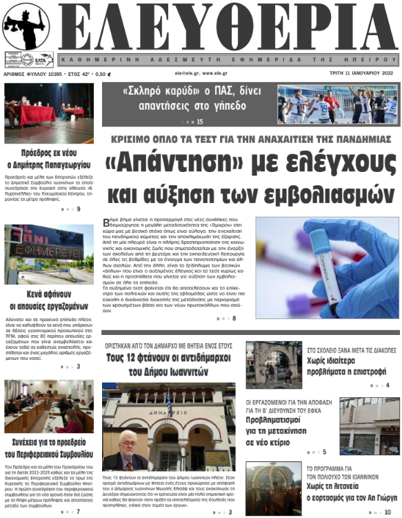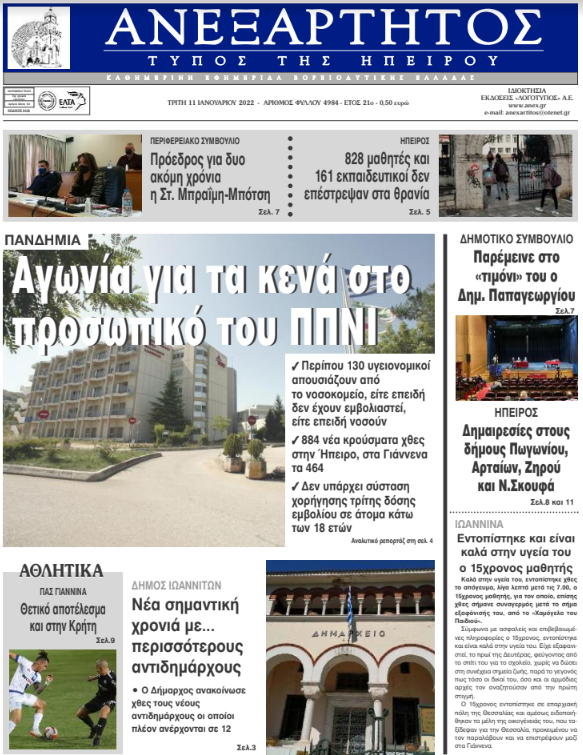 Διαβάστε στα πρωτοσέλιδα των γιαννιώτικων εφημερίδων της Τρίτης 11 Ιανουαρίου