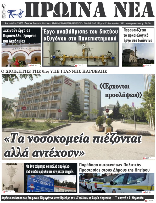 Διαβάστε στα πρωτοσέλιδα των γιαννιώτικων εφημερίδων της Πέμπτης 13 Ιανουαρίου