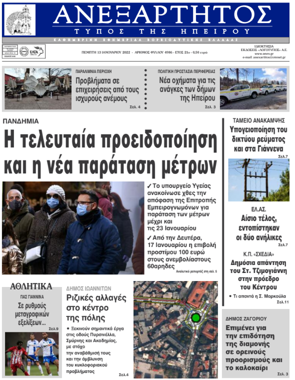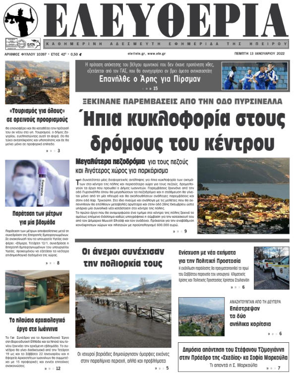 Διαβάστε στα πρωτοσέλιδα των γιαννιώτικων εφημερίδων της Πέμπτης 13 Ιανουαρίου