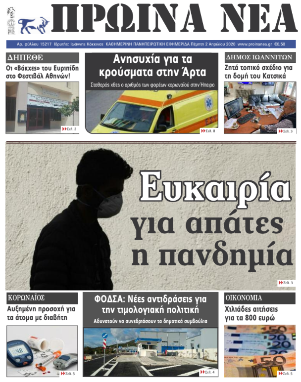 Διαβάστε σήμερα στα πρωτοσέλιδα των γιαννιώτικων εφημερίδων σήμερα, Πέμπτη 2 Απριλίου.