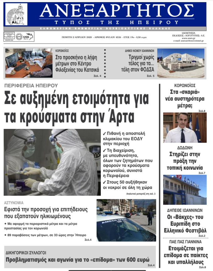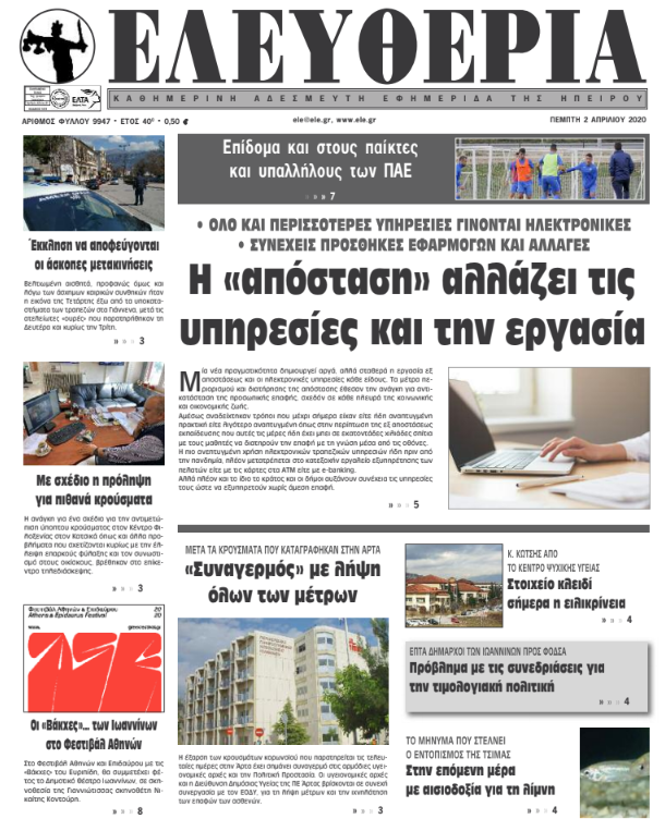 Διαβάστε σήμερα στα πρωτοσέλιδα των γιαννιώτικων εφημερίδων σήμερα, Πέμπτη 2 Απριλίου.