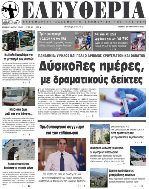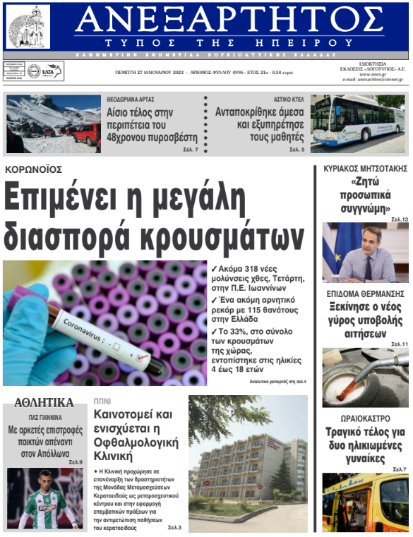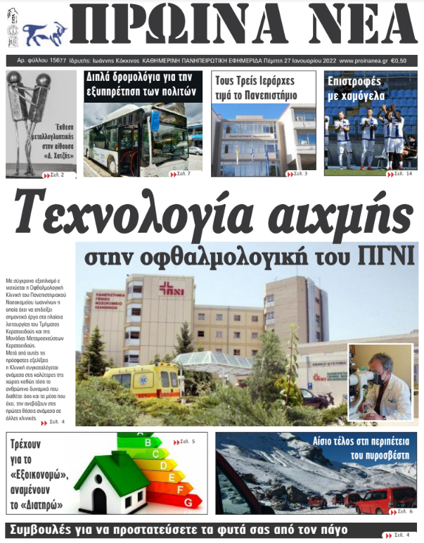 Διαβάστε στα πρωτοσέλιδα των γιαννιώτικων εφημερίδων της Πέμπτης 27 Ιανουαρίου