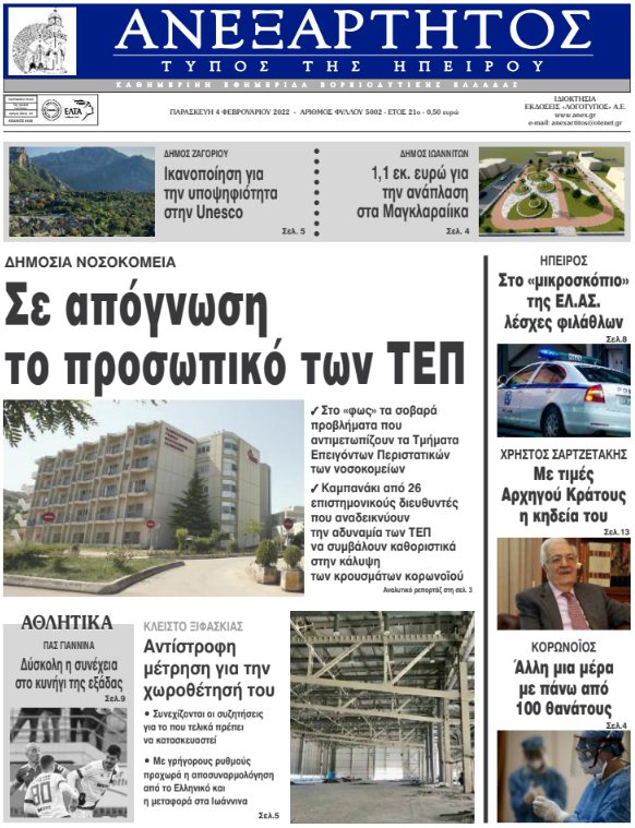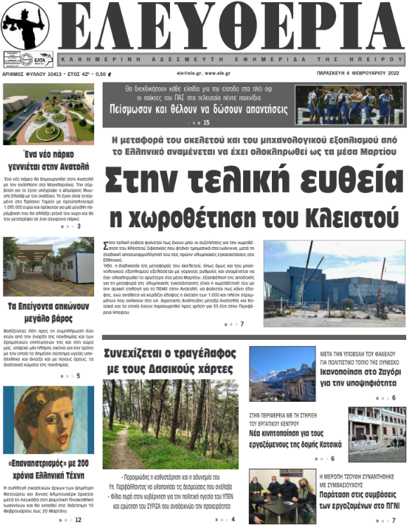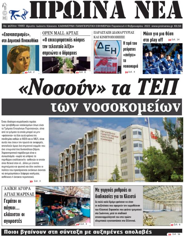 ΑρχικήΕΙΔΗΣΕΙΣΗΠΕΙΡΟΣ ΗΠΕΙΡΟΣ Τα πρωτοσέλιδα των γιαννιώτικων εφημερίδων 04.02.2022 86 FacebookTwitterWhatsAppEmailΤυπώνωViber Διαβάστε στα πρωτοσέλιδα των γιαννιώτικων εφημερίδων της Παρασκευής 4 Φεβρουαρίου TagsΓΙΑΝΝΙΩΤΙΚΕΣ ΕΦΗΜΕΡΙΔΕΣΠΡΩΤΟΣΕΛΙΔΑ FacebookTwitterWhatsAppEmailΤυπώνωViber Προηγούμενο άρθροΕξάρθρωση κυκλώματος διακίνησης μεταναστών από την Ελλάδα στη ΓερμανίαΕπόμενο άρθροΤα Επείγοντα σηκώνουν μεγάλο βάρος ΣΧΕΤΙΚΑ ΑΡΘΡΑ Τα πρωτοσέλιδα των γιαννιώτικων εφημερίδων ΗΠΕΙΡΟΣ 05.11.2025 Τα πρωτοσέλιδα των γιαννιώτικων εφημερίδων ΗΠΕΙΡΟΣ 04.11.2025 Τα πρωτοσέλιδα των γιαννιώτικων εφημερίδων TOP STORIES 01.11.2025 Τα πρωτοσέλιδα των γιαννιώτικων εφημερίδων ΗΠΕΙΡΟΣ 31.10.2025 Τα πρωτοσέλιδα των γιαννιώτικων εφημερίδων ΗΠΕΙΡΟΣ 30.10.2025 Τα πρωτοσέλιδα των γιαννιώτικων εφημερίδων ΗΠΕΙΡΟΣ 28.10.2025 ΣΤΗΝ ΙΔΙΑ ΚΑΤΗΓΟΡΙΑ «Άναψε πράσινο» για Σωφρονιστικό Κατάστημα στους Φιλιάτες ΗΠΕΙΡΟΣ 05.11.2025 206 πυρκαγιές με 61.000 καμένα στρέμματα στην Ήπειρο ΗΠΕΙΡΟΣ 05.11.2025 Κινητοποιήσεις για τα ΕΛΤΑ σε Μέτσοβο – Καναλάκι TOP STORIES 05.11.2025 Αντιπαράθεση στη Ζίτσα για τη στάση της αντιπολίτευσης στο Δημοτικό Συμβούλιο ΗΠΕΙΡΟΣ 05.11.2025 Δήμος Ζίτσας: Απόφαση σταθμός της δημοτική αρχής για τη συνέχιση της λειτουργίας των ΕΛ.ΤΑ. ΗΠΕΙΡΟΣ 05.11.2025 Τμηματική διακοπή κυκλοφορίας στην 28ης Οκτωβρίου λόγω εργασιών διαγράμμισης ΗΠΕΙΡΟΣ 05.11.2025 ΜΗ ΧΑΣΕΤΕ «Άναψε πράσινο» για Σωφρονιστικό Κατάστημα στους Φιλιάτες 206 πυρκαγιές με 61.000 καμένα στρέμματα στην Ήπειρο Κινητοποιήσεις για τα ΕΛΤΑ σε Μέτσοβο – Καναλάκι Δήμος Ζίτσας: Απόφαση σταθμός της δημοτική αρχής για τη συνέχιση της λειτουργίας των ΕΛ.ΤΑ. Προτάσεις του ΤΕΕ για τη συνέχιση της λειτουργίας και των έργων της Εγνατίας ΔΗΜΟΦΙΛΗ Συνελήφθη αλλοδαπός στα Ιωάννινα για παράνομη κατοχή μαχαιριού Δήμος Ζίτσας: Απόφαση σταθμός της δημοτική αρχής για τη συνέχιση της λειτουργίας των ΕΛ.ΤΑ. 206 πυρκαγιές με 61.000 καμένα στρέμματα στην Ήπειρο Κινητοποιήσεις για τα ΕΛΤΑ σε Μέτσοβο – Καναλάκι Στον αέρα το μέλλον του ΠΑΣ – Έκκληση για στήριξη