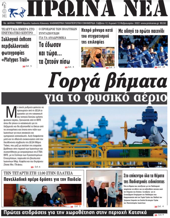 Διαβάστε στα πρωτοσέλιδα των γιαννιώτικων εφημερίδων του τριημέρου 12-14 Φεβρουαρίου