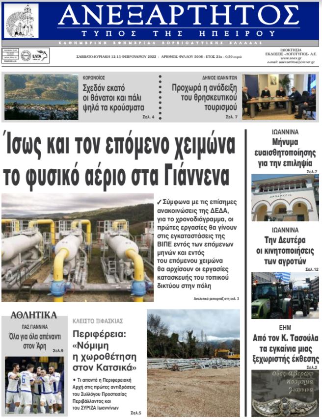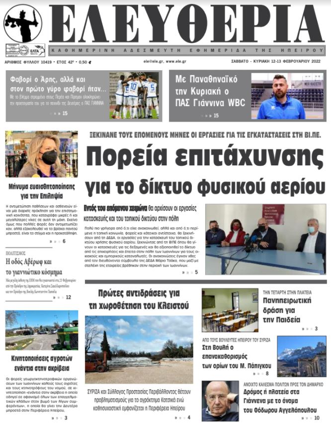 Διαβάστε στα πρωτοσέλιδα των γιαννιώτικων εφημερίδων του τριημέρου 12-14 Φεβρουαρίου