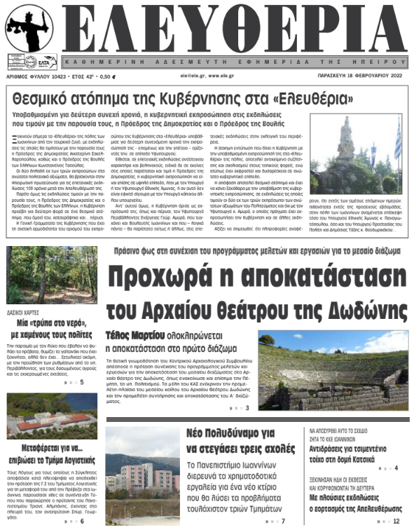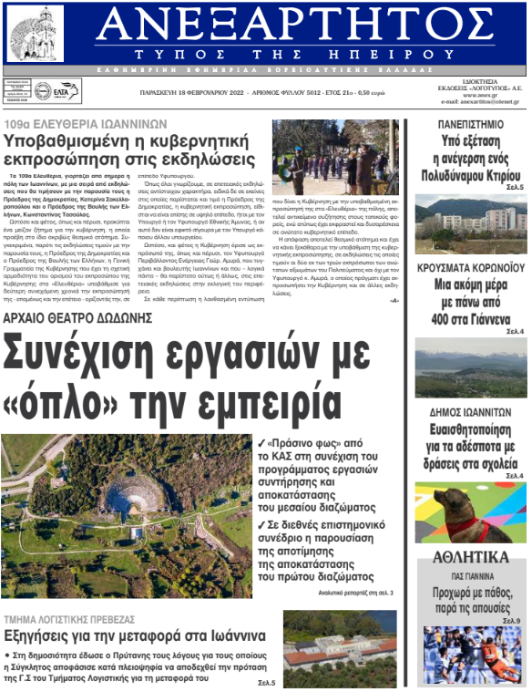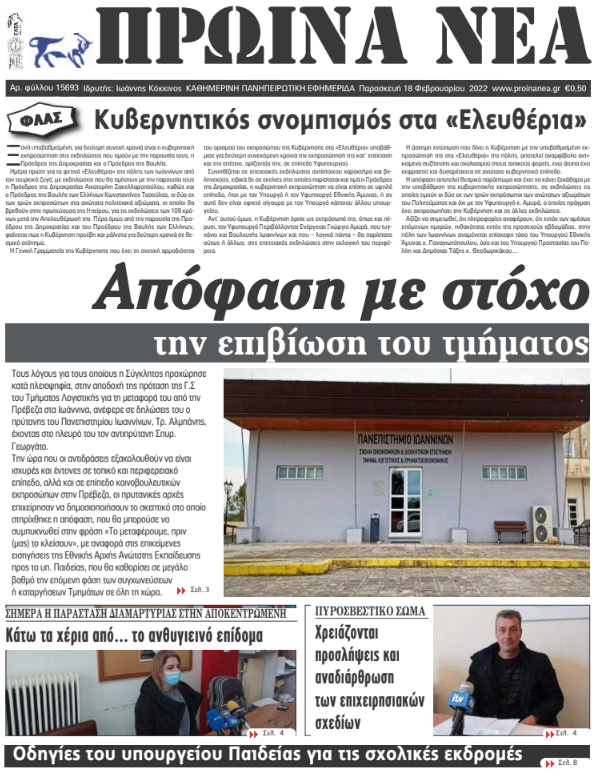 Διαβάστε στα πρωτοσέλιδα των γιαννιώτικων εφημερίδων της Παρασκευής 18 Φεβρουαρίου